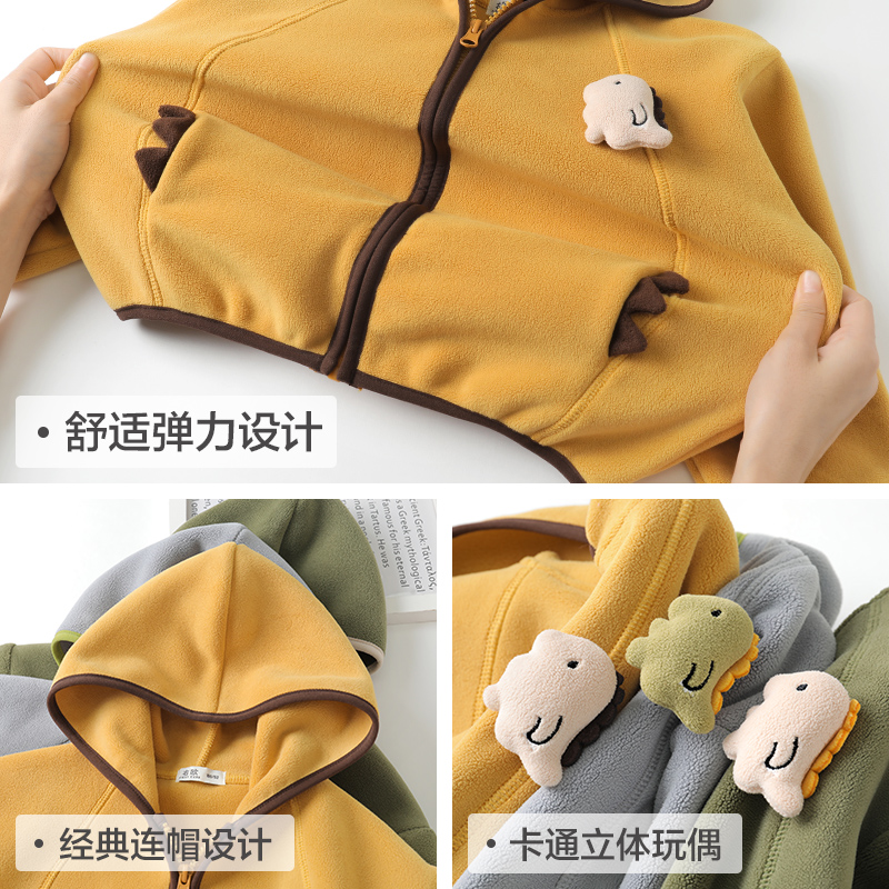 右欧童装男童女童连帽加绒外套儿童宝宝加厚上衣恐龙保暖秋冬新款