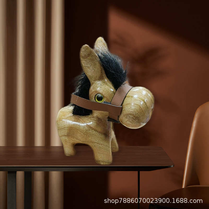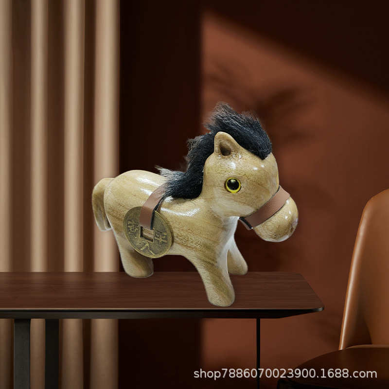 厂家直供木雕十二生肖动物马到成功办公摆件装饰檀木工艺品