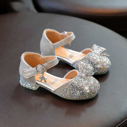 真皮女童公主鞋儿童高跟鞋2026春季水晶鞋配礼服水钻小女孩演出鞋