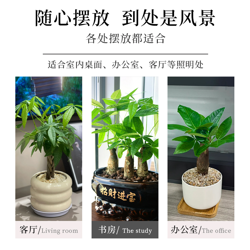 发财树盆栽花卉植物办公室内客厅绿植小盆景四季常青易活水培好养