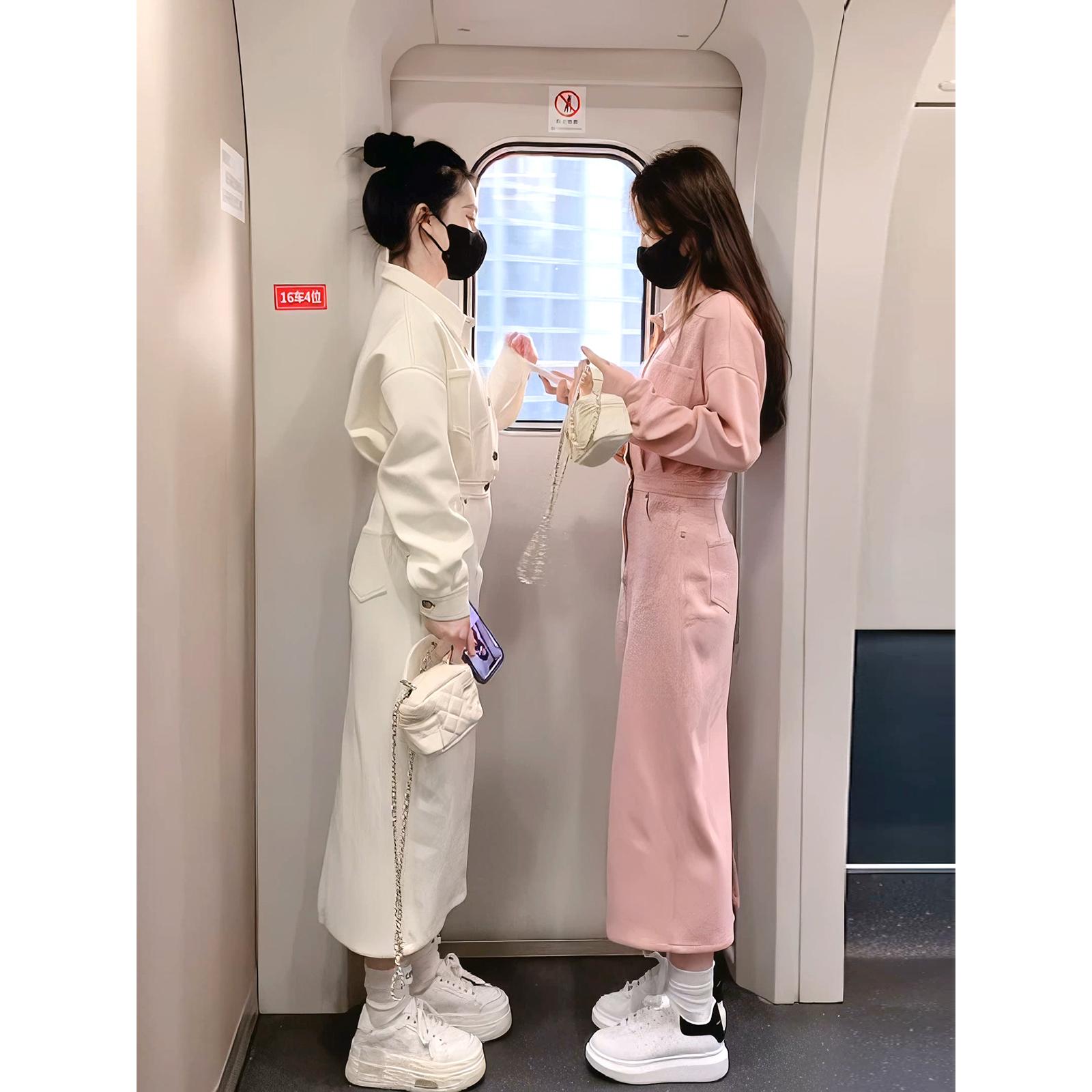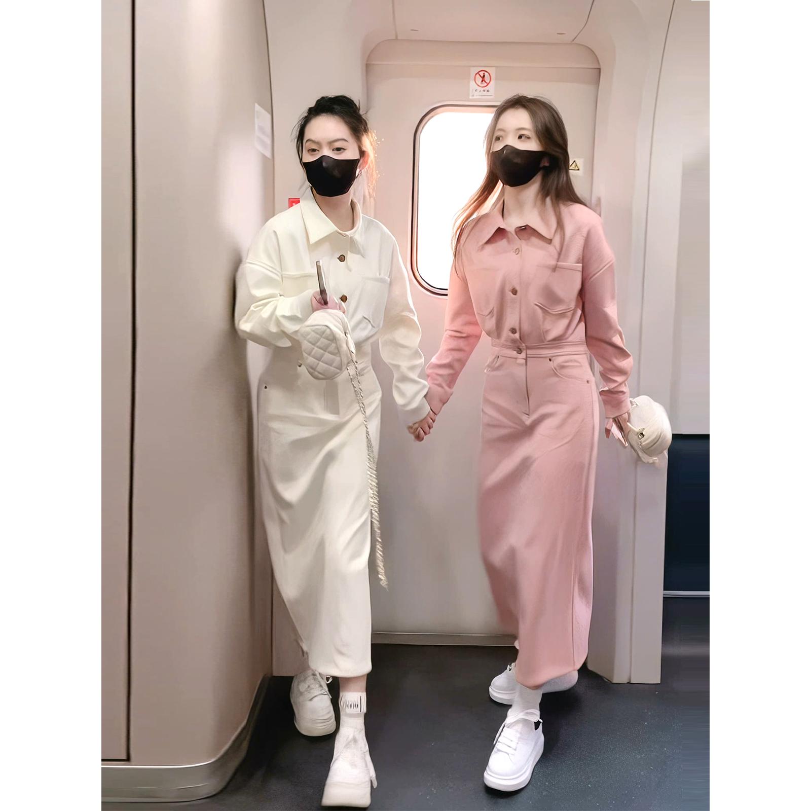 港式设计感牛仔连衣裙女春秋季新款修身显瘦气质收腰过膝中长裙