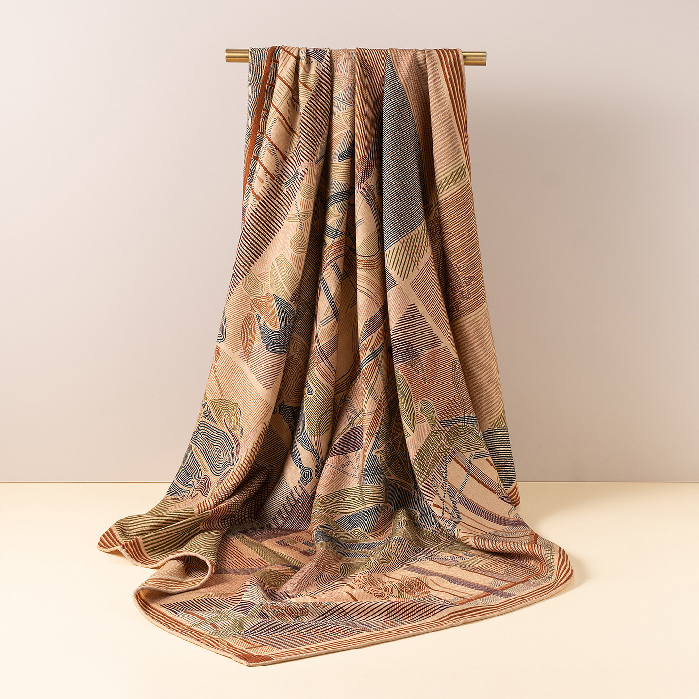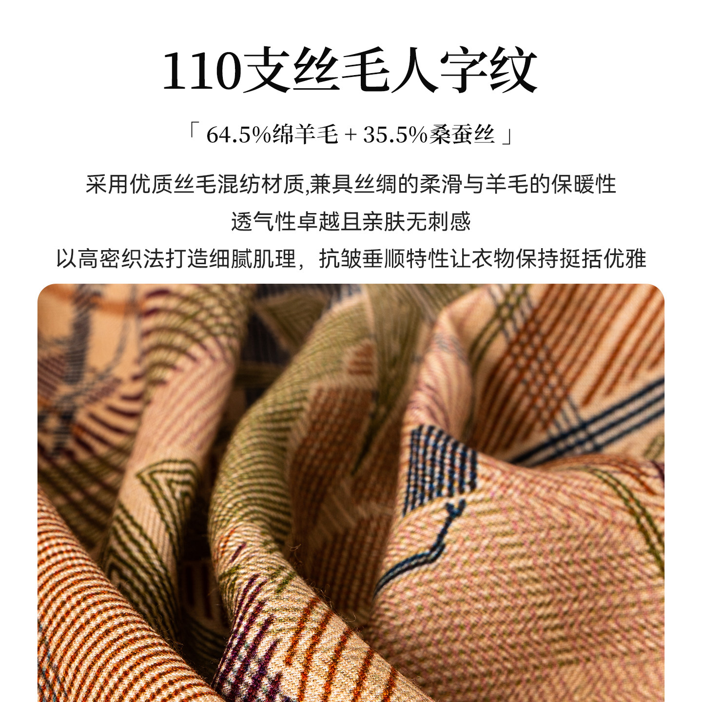【专柜同款】上海故事2025秋冬新品桑蚕丝围巾绵羊毛印花大方巾