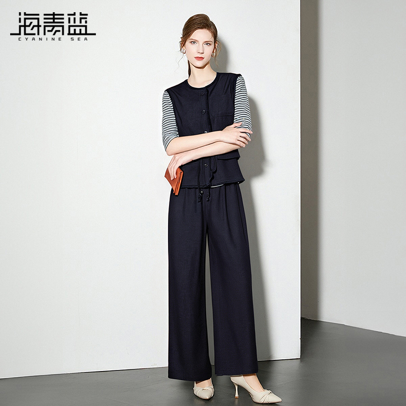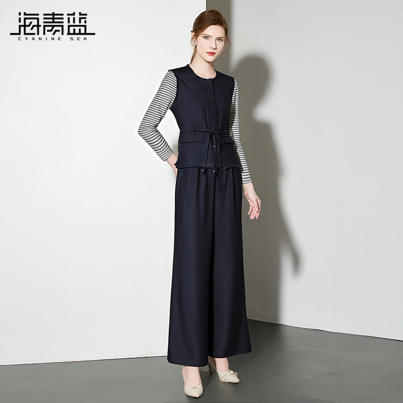 海青蓝 秋套装女2025新款长袖时尚气质女装高级设计休闲裤两件套