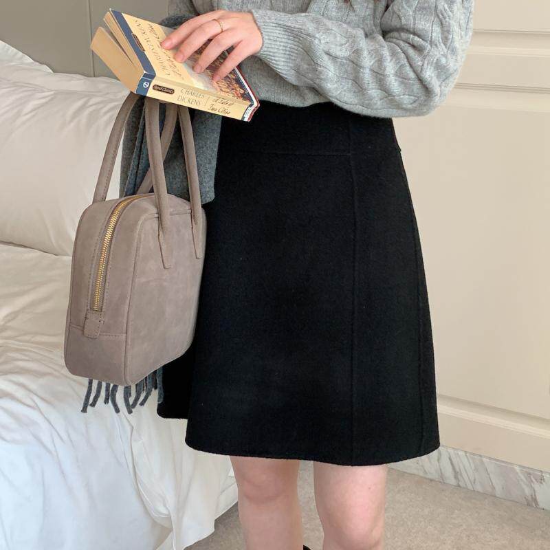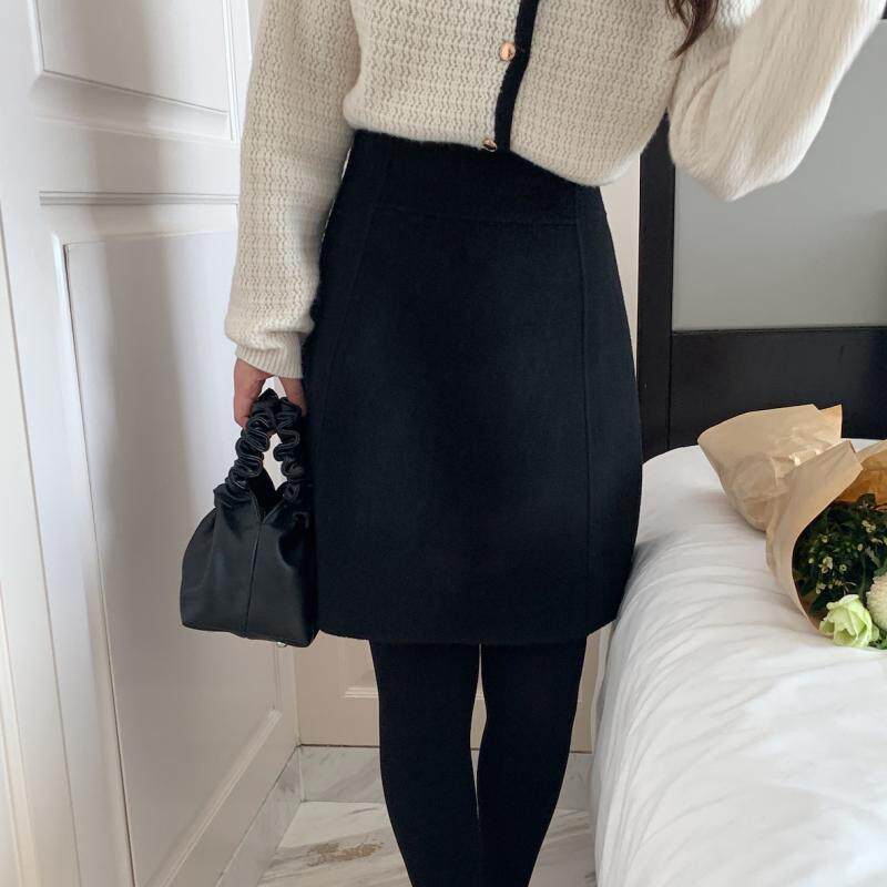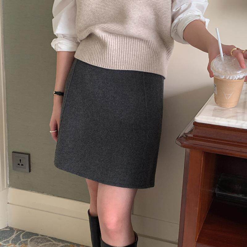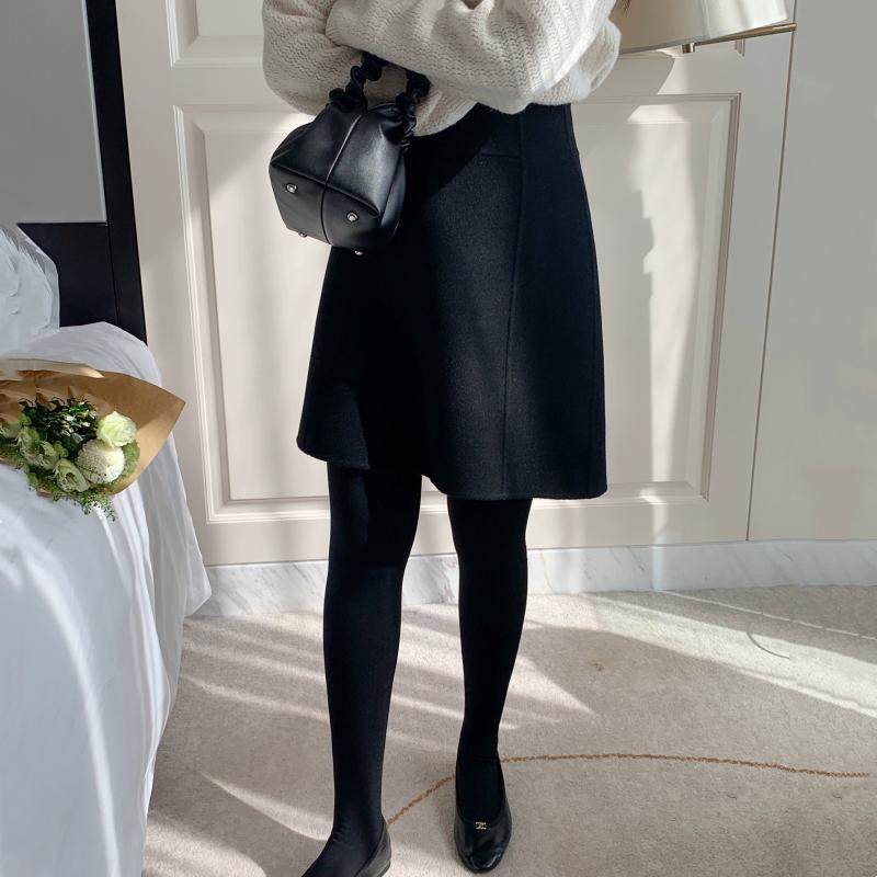 韩风高级感毛呢中裙女秋冬梨形身材羊毛半身裙裤大码加厚a字短裙