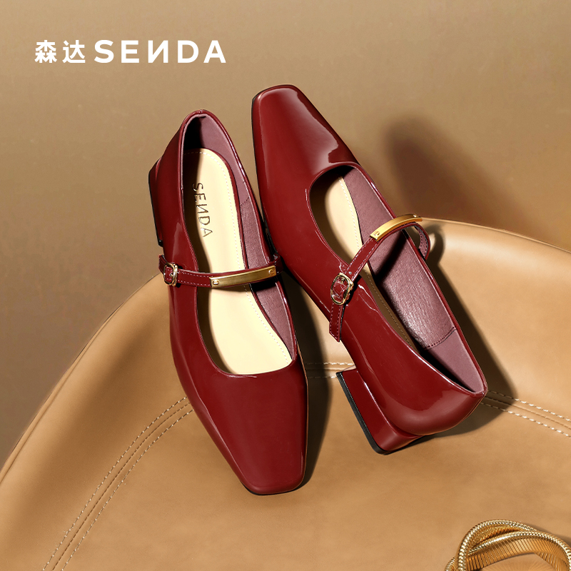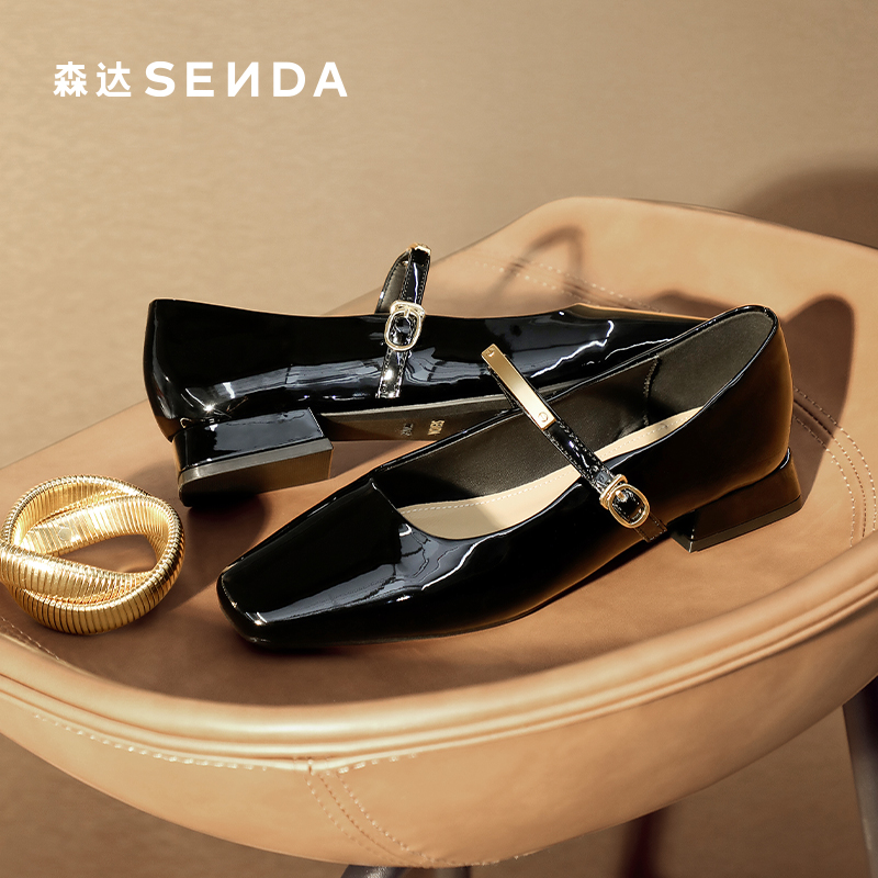 森达小金豆玛丽珍鞋女款2025秋新知性通勤粗跟浅口单鞋XQT01CQ5