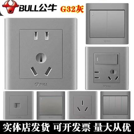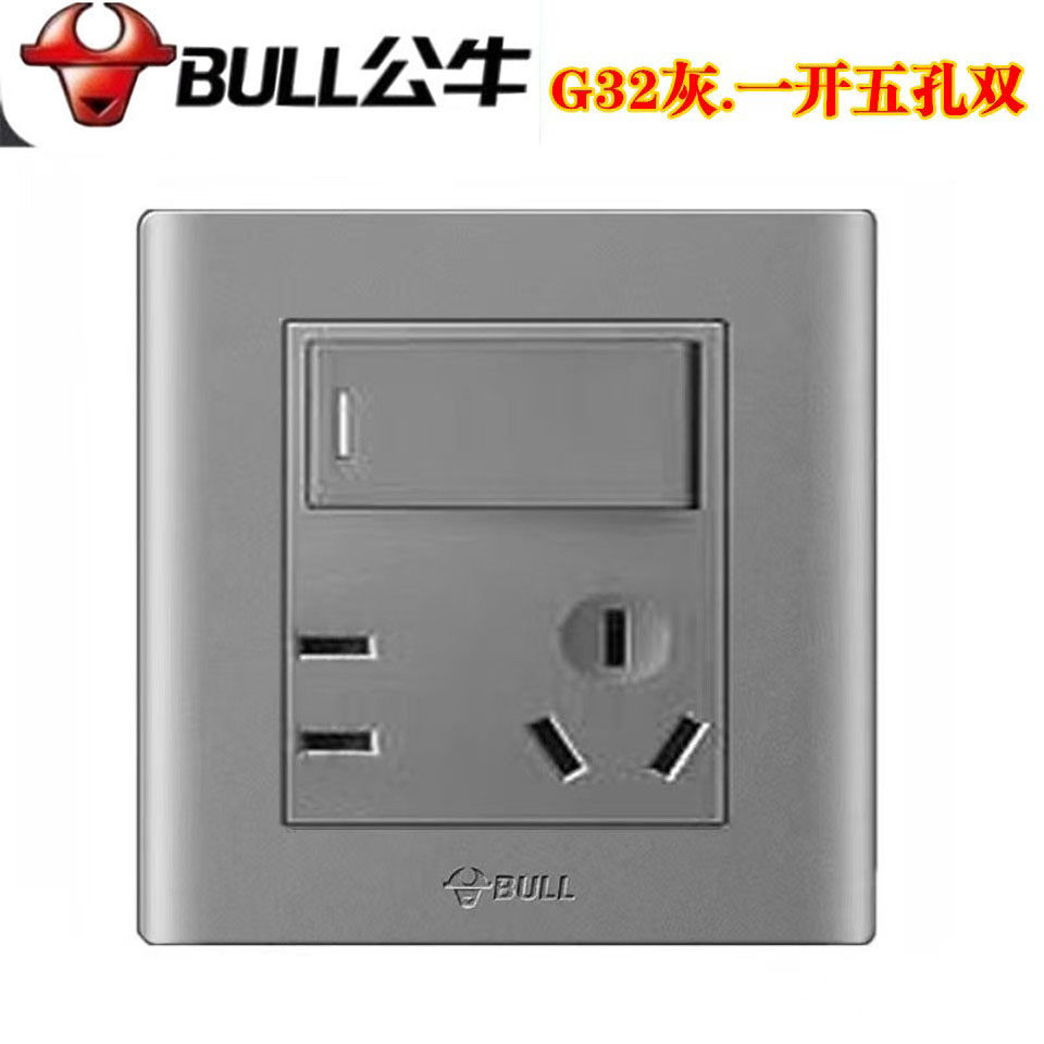 公牛G32开关插座墙壁面板一开双五孔插座86型家用电脑暗装星空灰