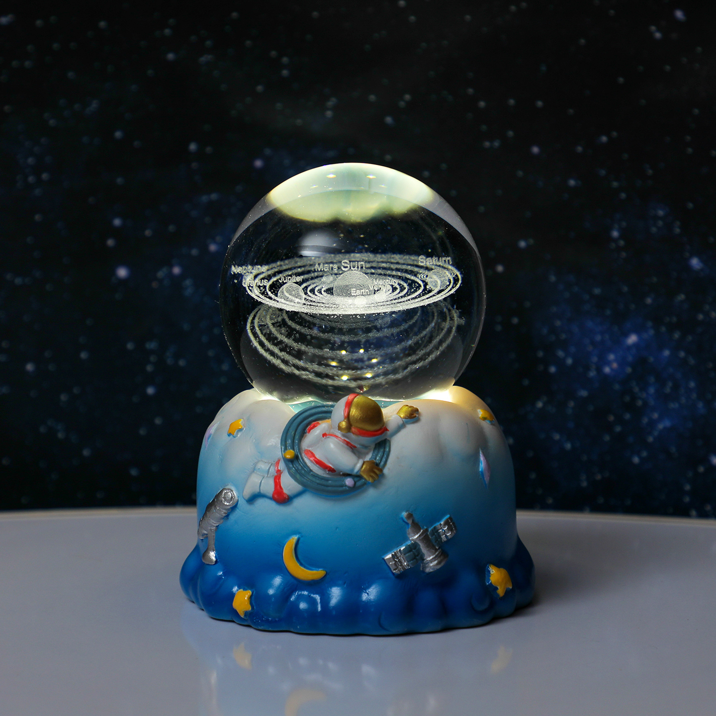 创意自动旋转水晶球小夜灯摆件
