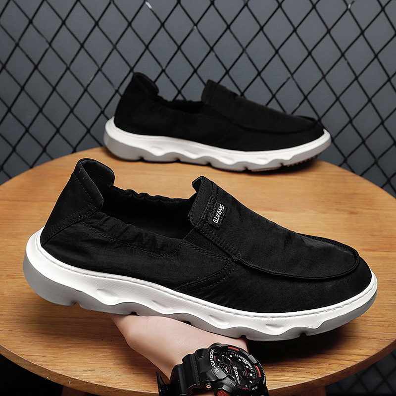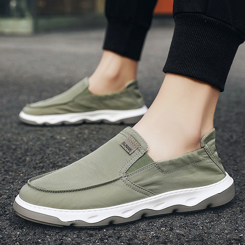 布鞋男夏季透气冰丝老人鞋老北京运动帆布鞋一脚蹬开车休闲豆豆鞋