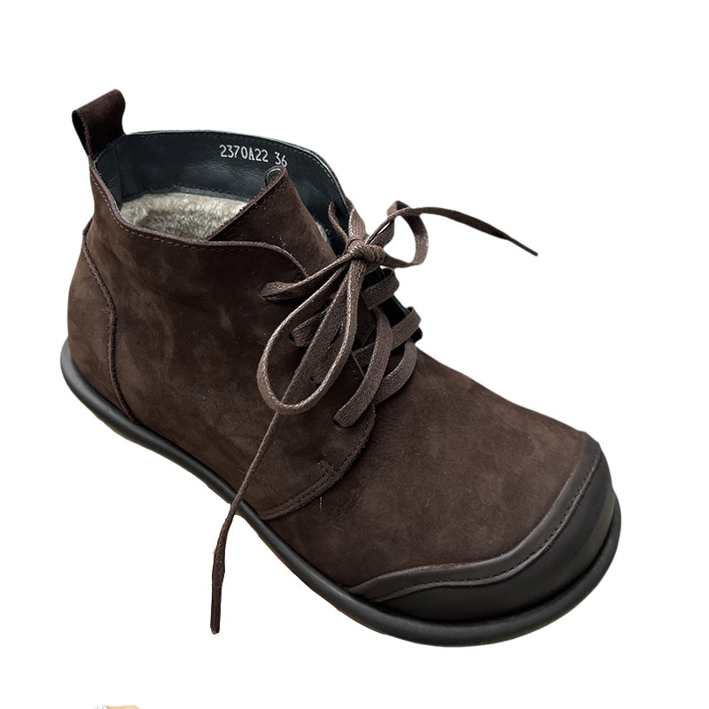 艺鞜2026年冬季新款真皮棉靴平底大毛系带短靴平底厚绒马丁靴子女
