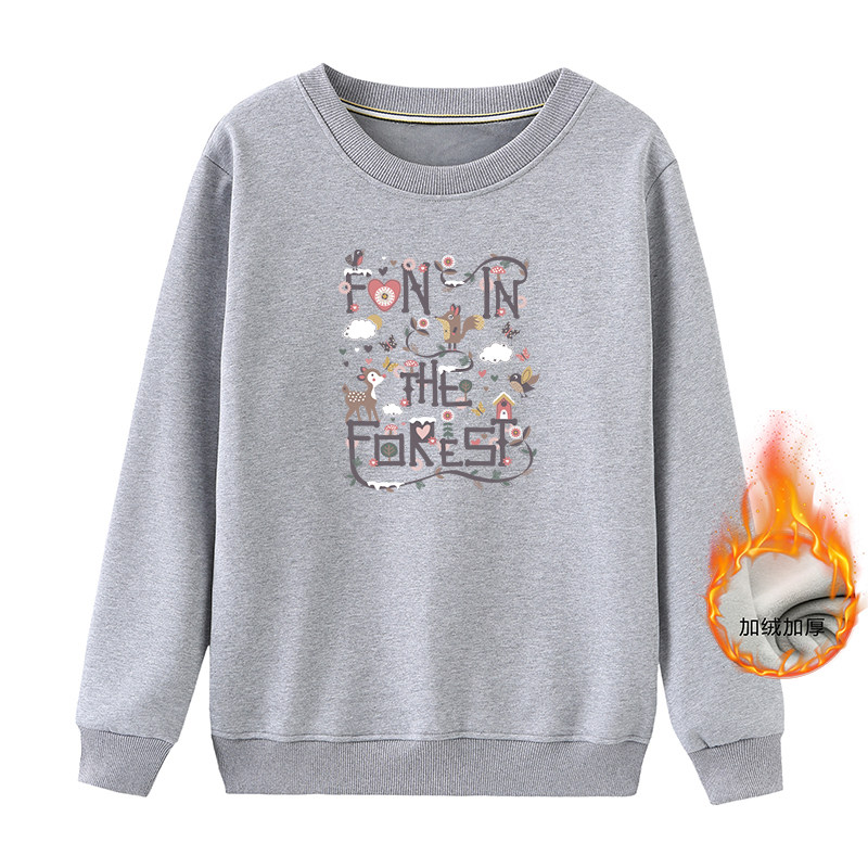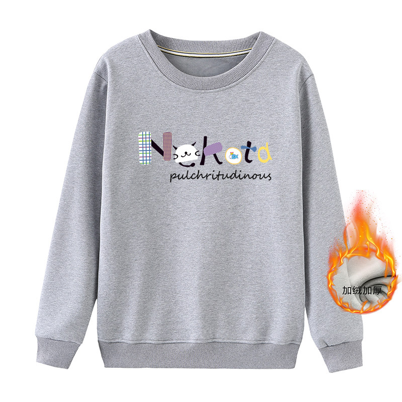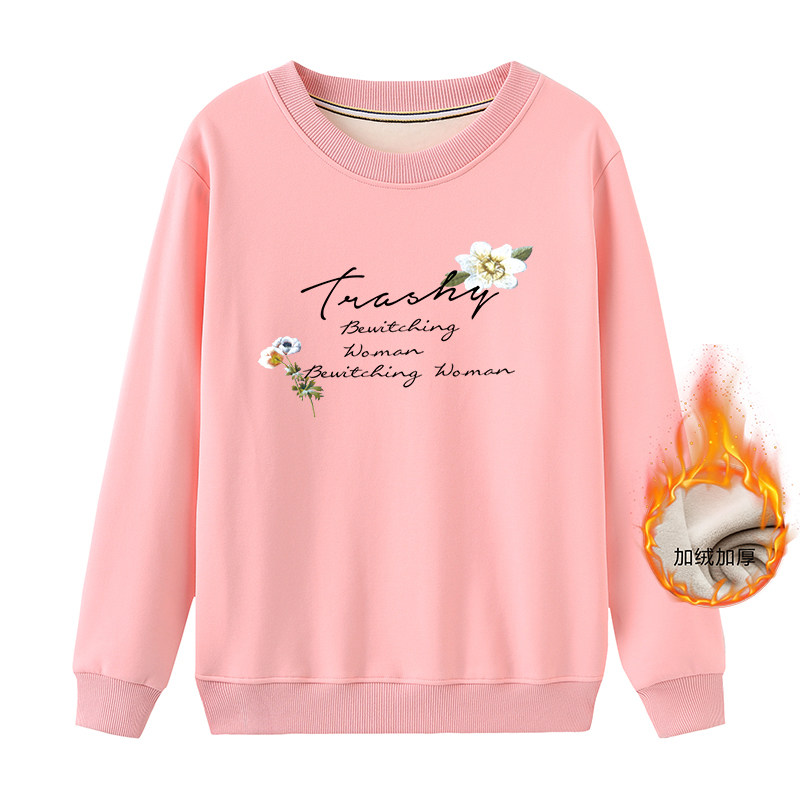 加绒加厚卫衣女秋冬季学生胖mm宽松韩版2025新款大码女装纯色保暖
