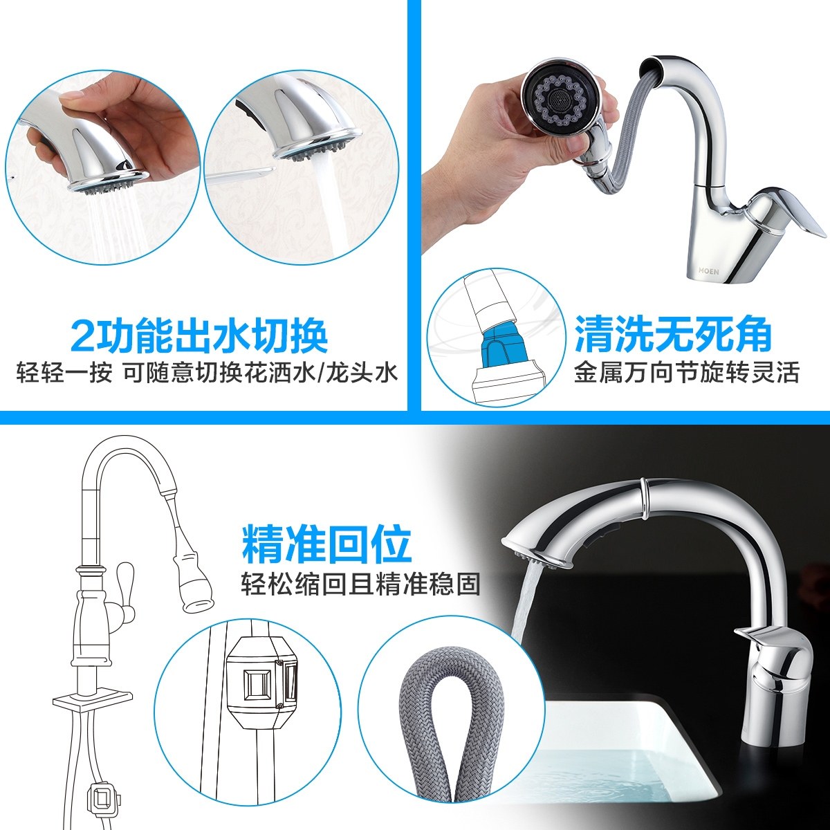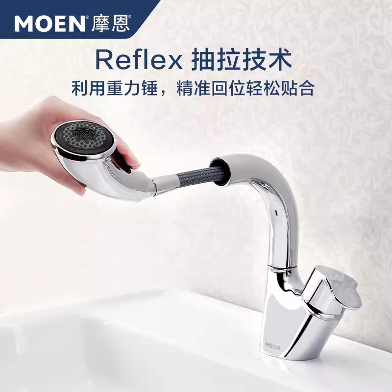 摩恩抽拉龙头冷热家用洗脸盆卫生间洗手间面盆水龙头 91035/89122