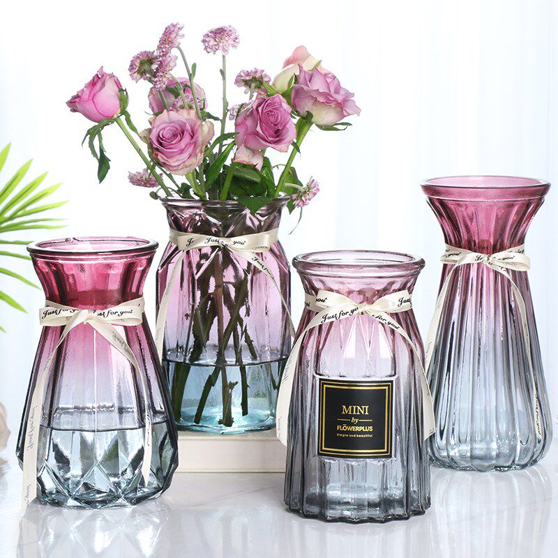 北欧创意透明玻璃花瓶水培绿萝植物干花鲜花插花瓶客厅装饰摆件
