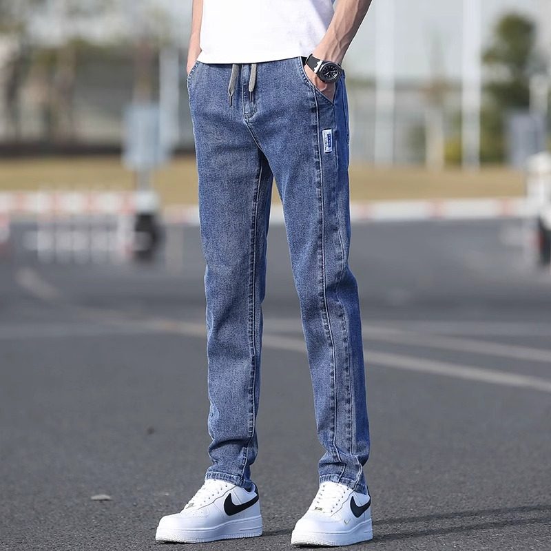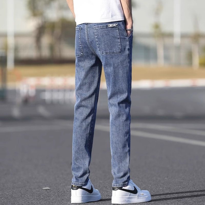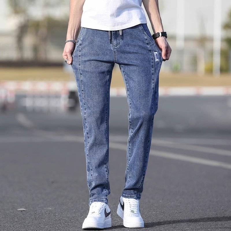 2025新款夏季薄款牛仔裤男士修身小脚裤子男潮牌直筒蓝色休闲长裤