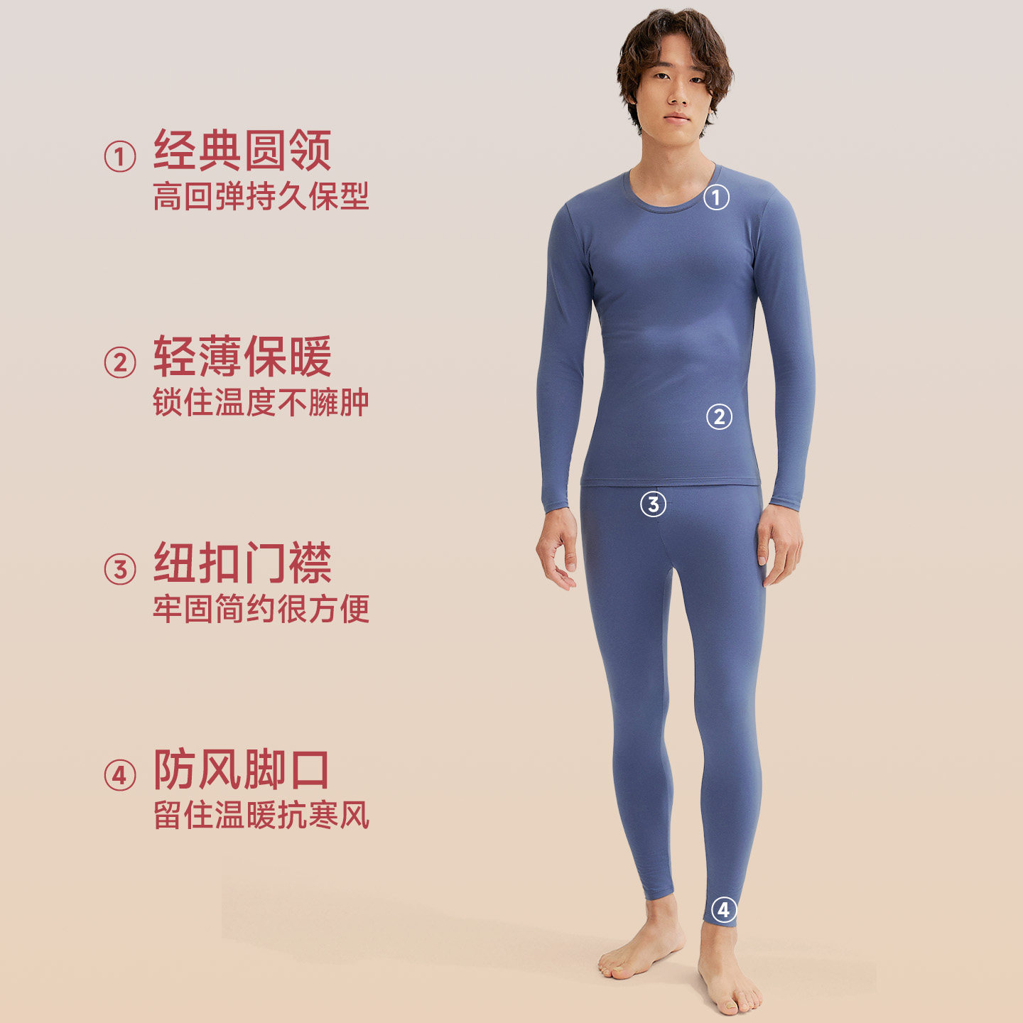 男士秋衣秋裤套装加绒加厚男款A类纯棉抗菌打底修身保暖内衣冬季