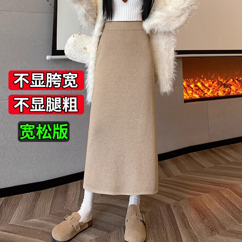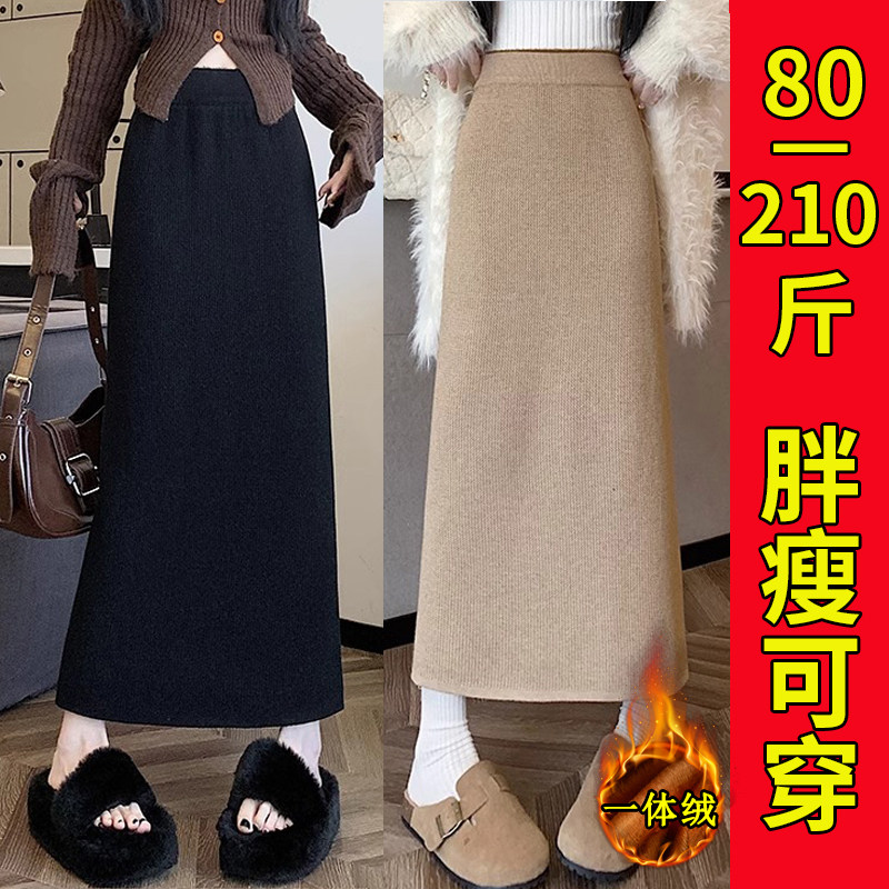 大码胖mm加绒加厚针织半身裙女秋冬加长高个子裙子直筒包臀裙长裙