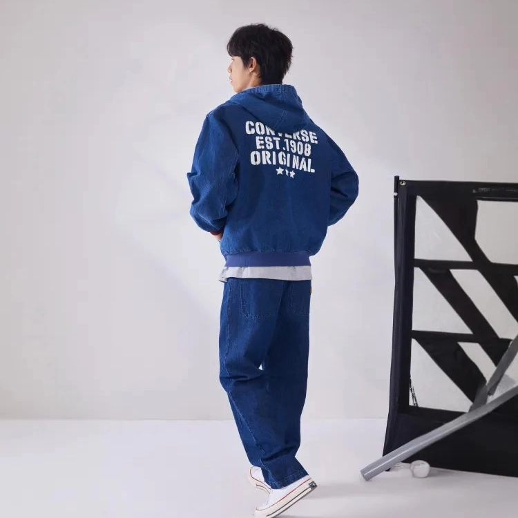 Converse匡威26春季新品连帽印花宽松牛仔夹克男外套 MCJ411-UHA