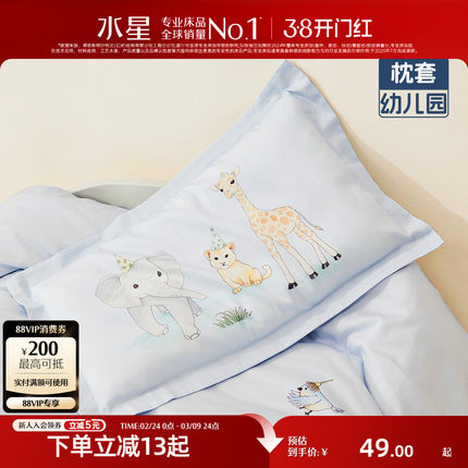 水星家纺儿童幼儿园枕套母婴A类60S长绒棉贡缎枕头套卡通抑菌床品