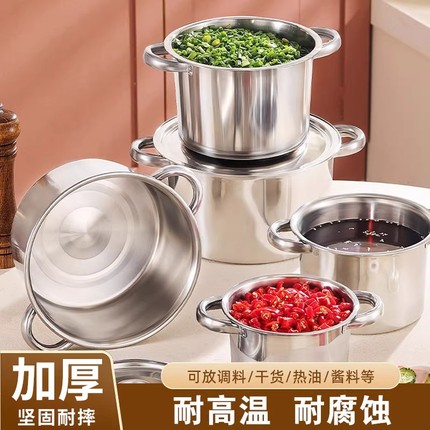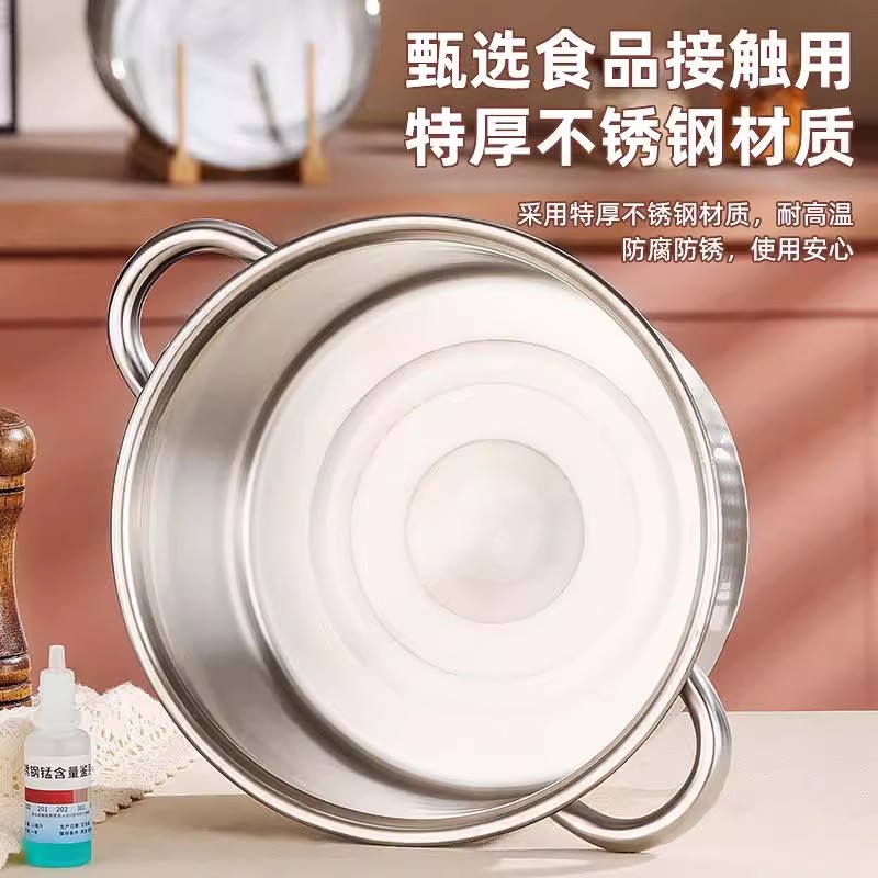 带盖大容量不锈钢直角汤锅辅食锅泡面锅家用双耳熬汤锅电磁炉专用