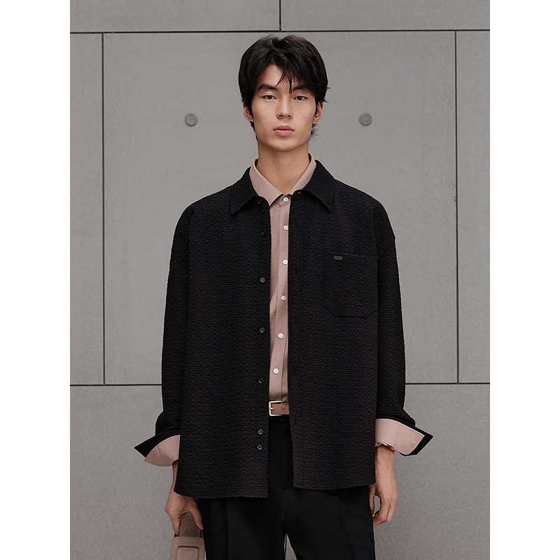 GXG男装 商场同款肌理质感衬衫通勤薄外套25年秋季新品G25X033072