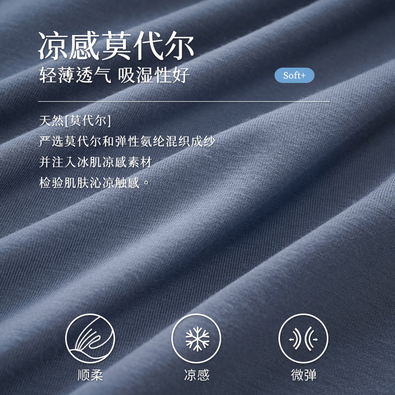猫人男士睡衣夏季莫代尔圆领短袖2025新款冰丝凉感大码家居服套装