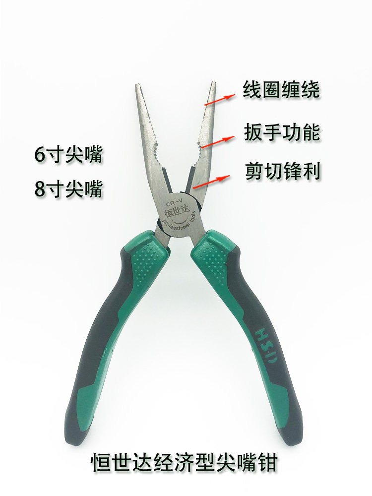 恒世达尖嘴6寸8寸多功能斜嘴钢丝钳老虎钳省力平口斜口电工钳子