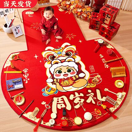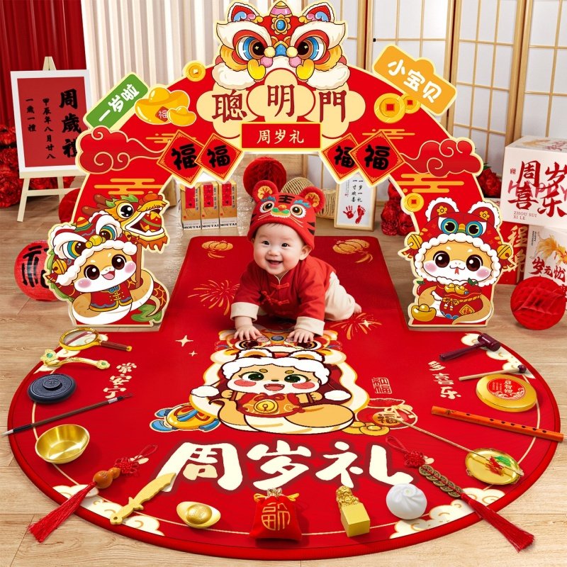 抓周用品道具一周岁礼仪式布置套装蛇宝传统摆件启智锣地毯垫全套