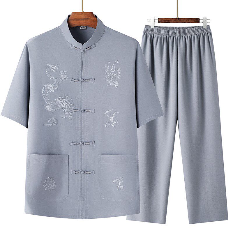 中老年唐装男士夏季款上衣短袖男套装爸爸夏装老年人爷爷宽松衣服