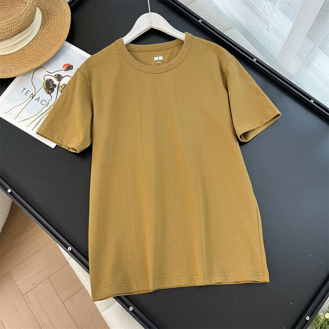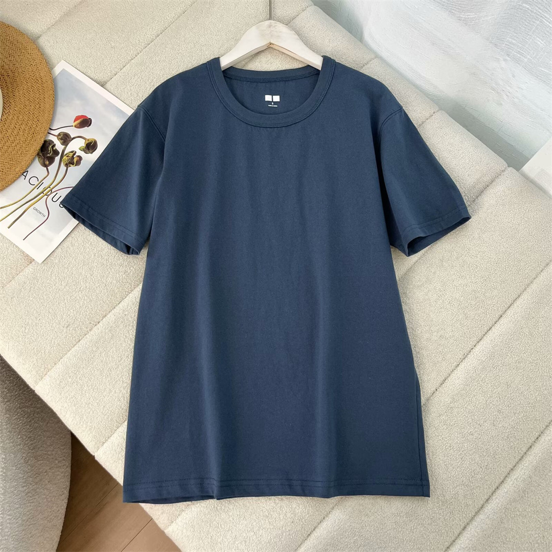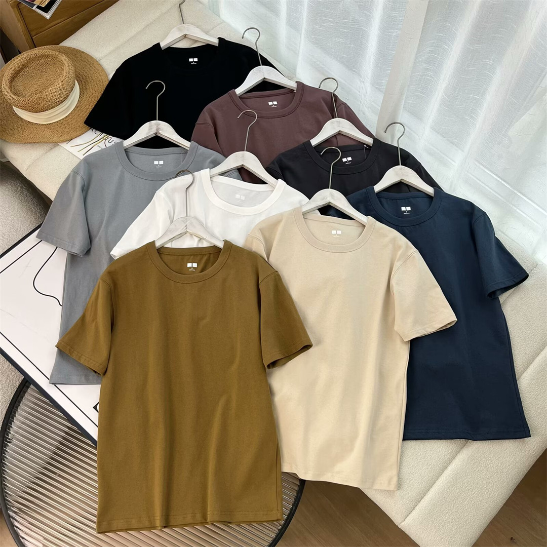 100棉 夏季男装女装纯色百搭休闲宽松重磅圆领短袖T恤打底 475356