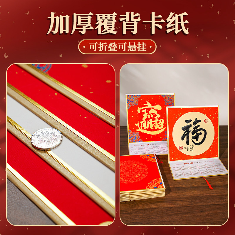 2026年新款空白书法挂历宣纸折叠日历半生熟新年手写福字吊历万年红作品纸文创挂轴挂历diy国画年历卡纸定制