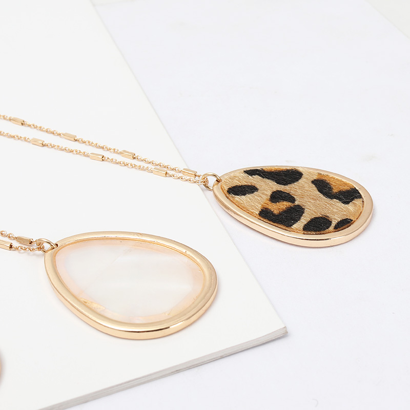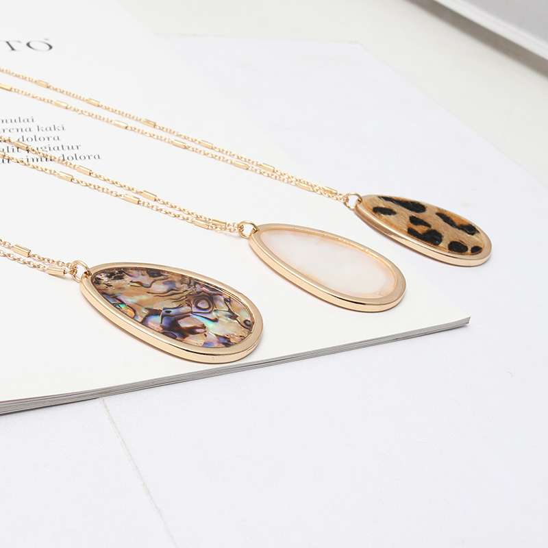 欧美风饰品 豹纹镶嵌鲍鱼贝时尚潮流吊坠质感长款项链 毛衣链