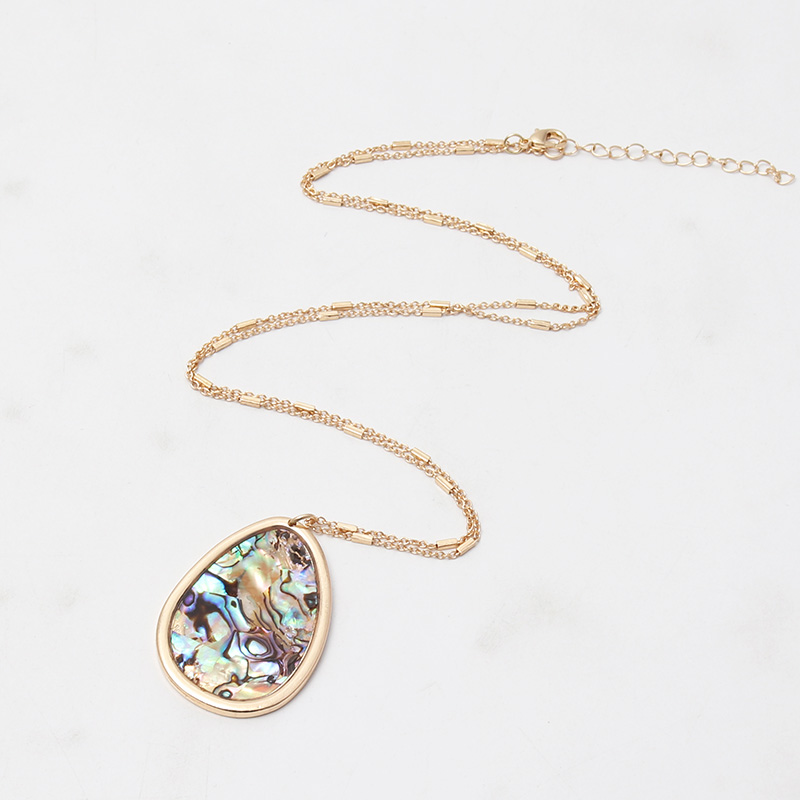欧美风豹纹鲍鱼贝吊坠质感毛衣链