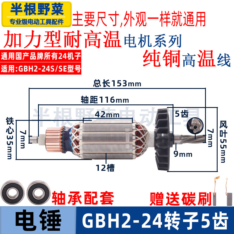 适用博士博世GBH2-24电锤冲击钻转子5 6齿转子2-24S SE冲击钻配件