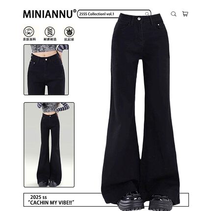 特大码女装黑色微喇牛仔裤女春季穿搭胖mm弹力显瘦垂坠感喇叭裤子