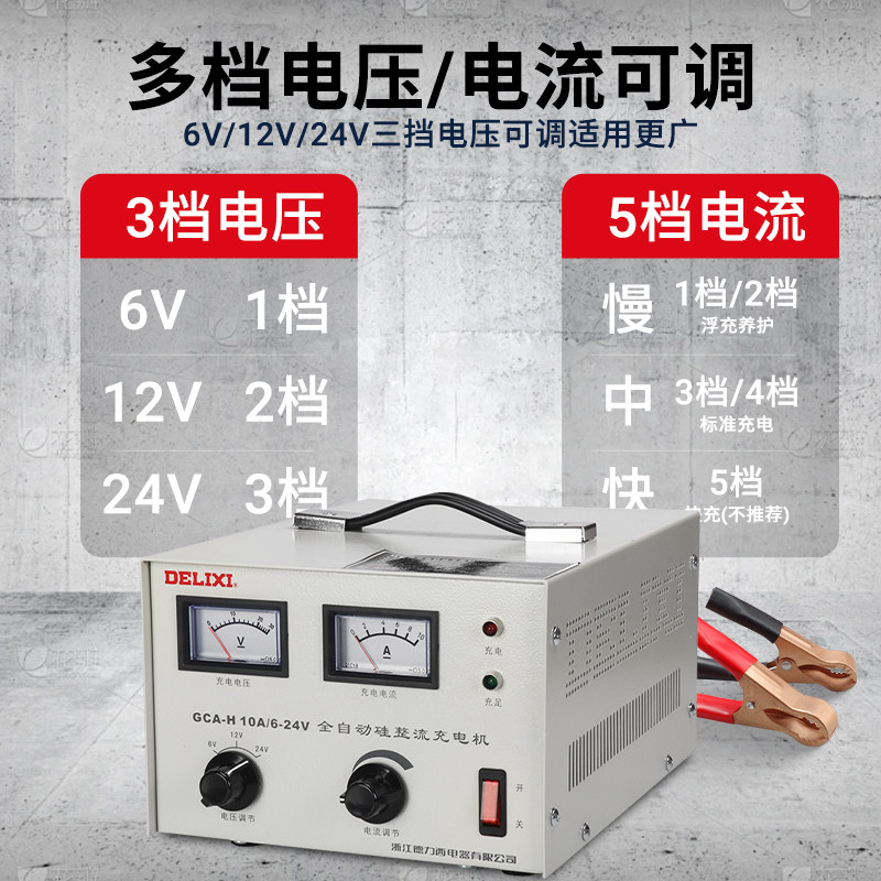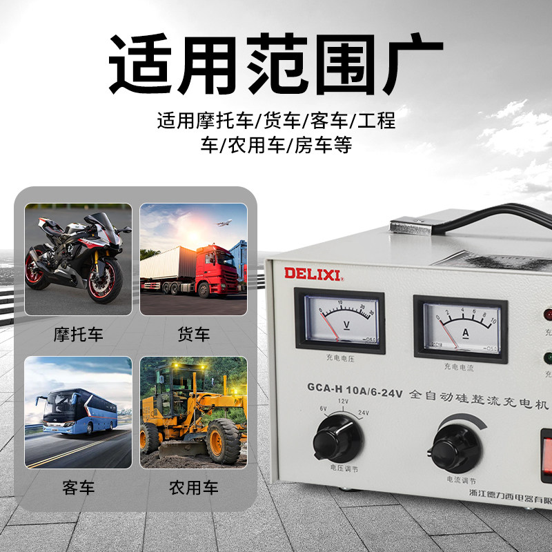 德力西汽车电瓶充电器 蓄电池直流充电机GCA-H10A 6V 12V 24V