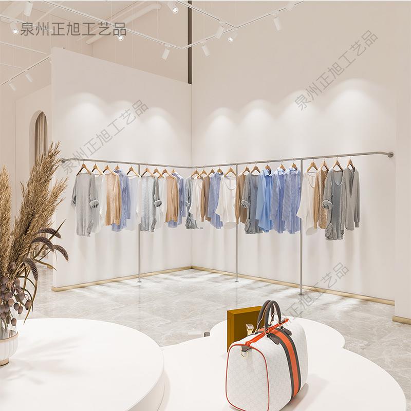 服装展示架上墙壁挂式挂衣杆女装店衣服陈列架落地式不锈钢服装架