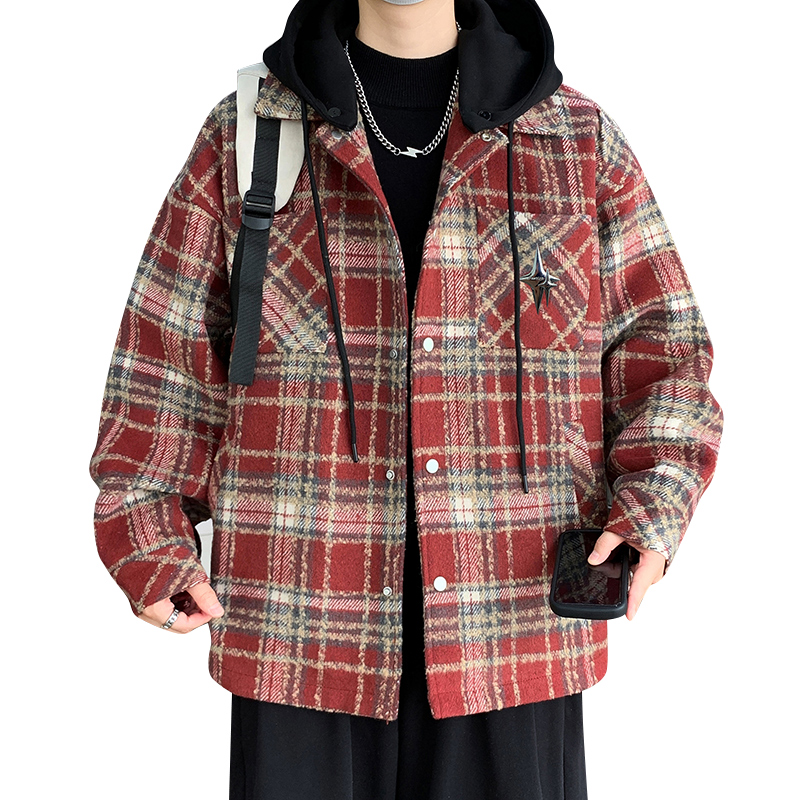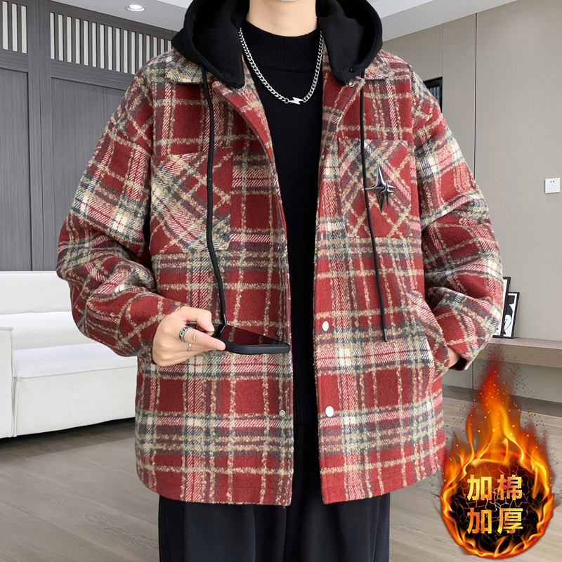 冬季潮流帅气格子棉衣16宽松棉服