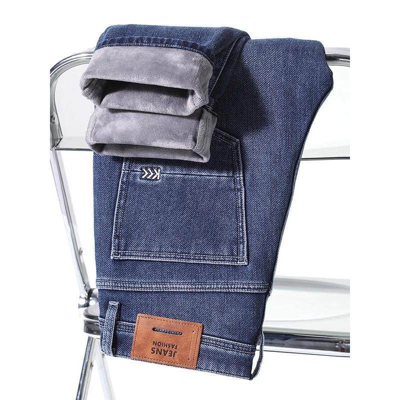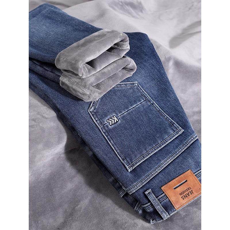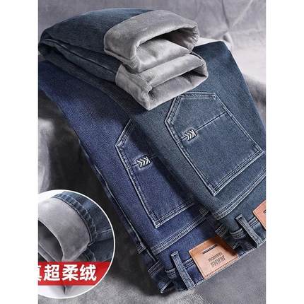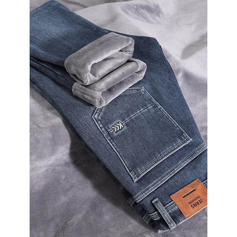 Yishion以纯官方时尚正品加绒牛仔裤男士加厚宽松直筒休闲秋冬款