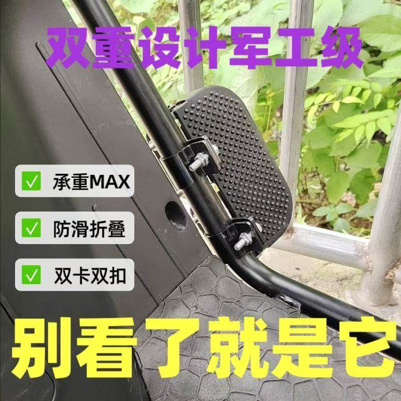 护杠脚踏板加宽防滑摩托车改装配件折叠脚蹬外卖电动车加装免打孔