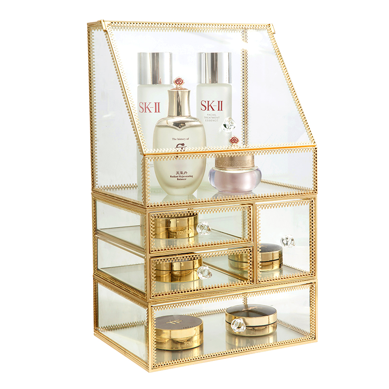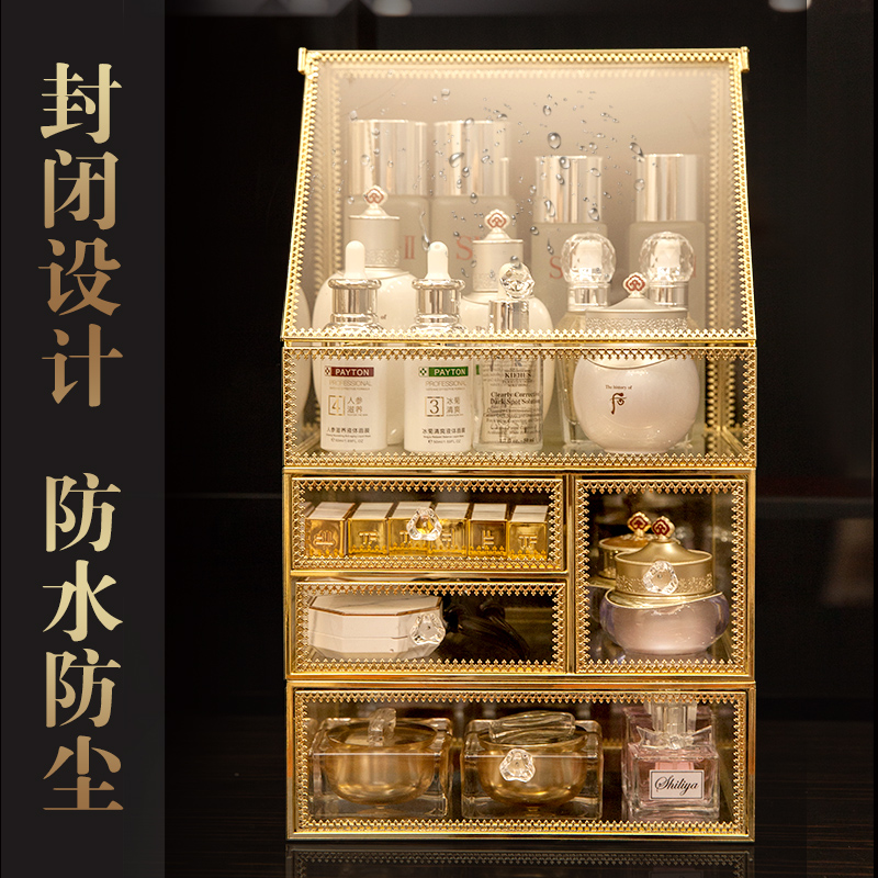 网红玻璃化妆品收纳盒家用非亚克力口红护肤刷子首饰梳妆台置物架