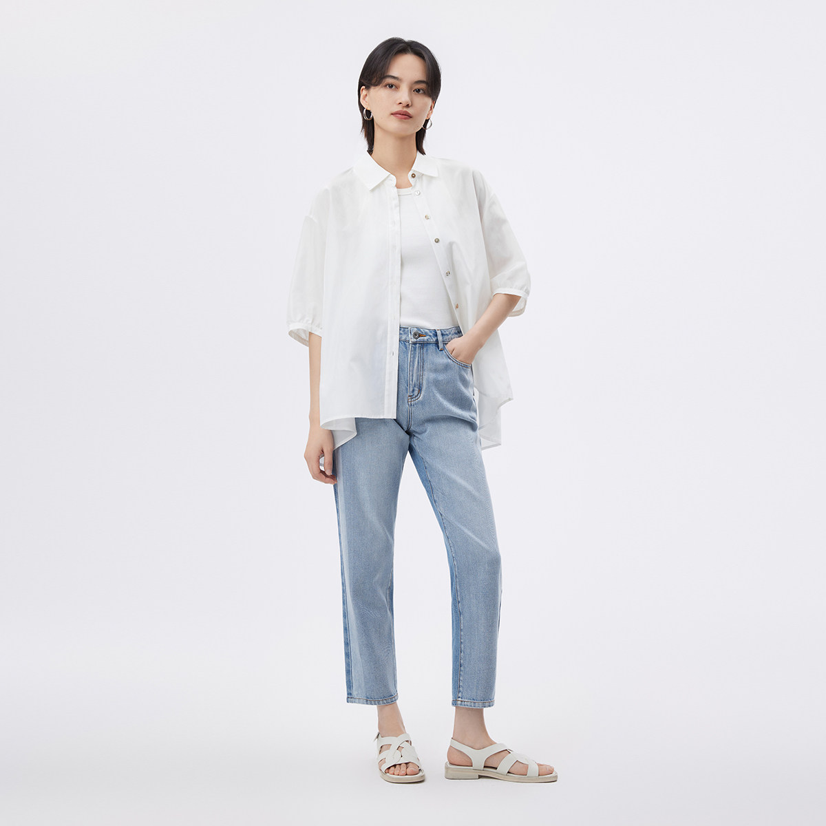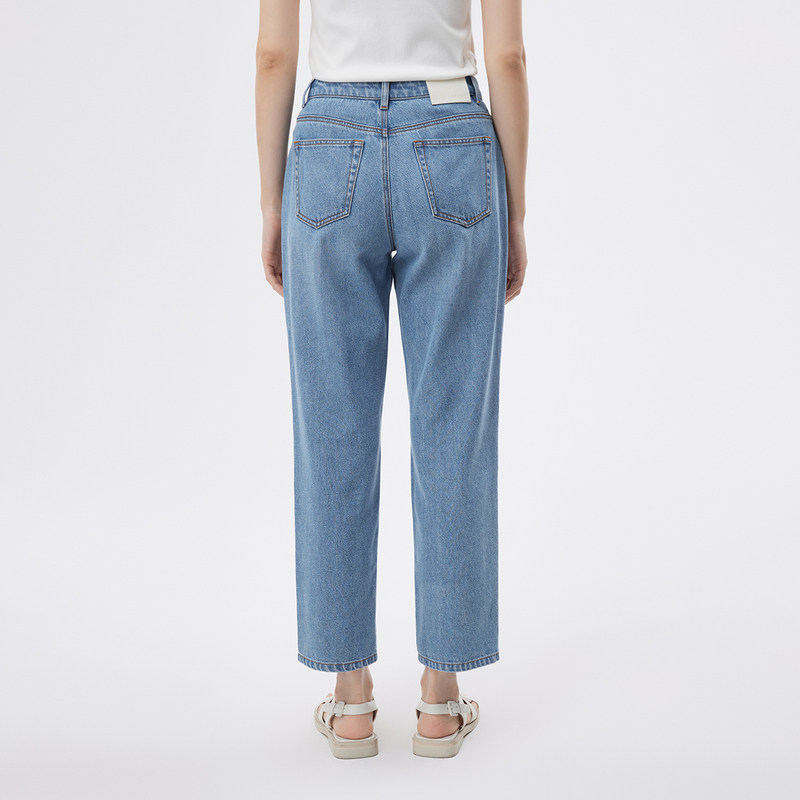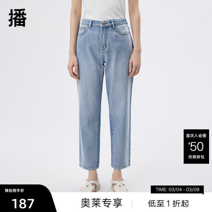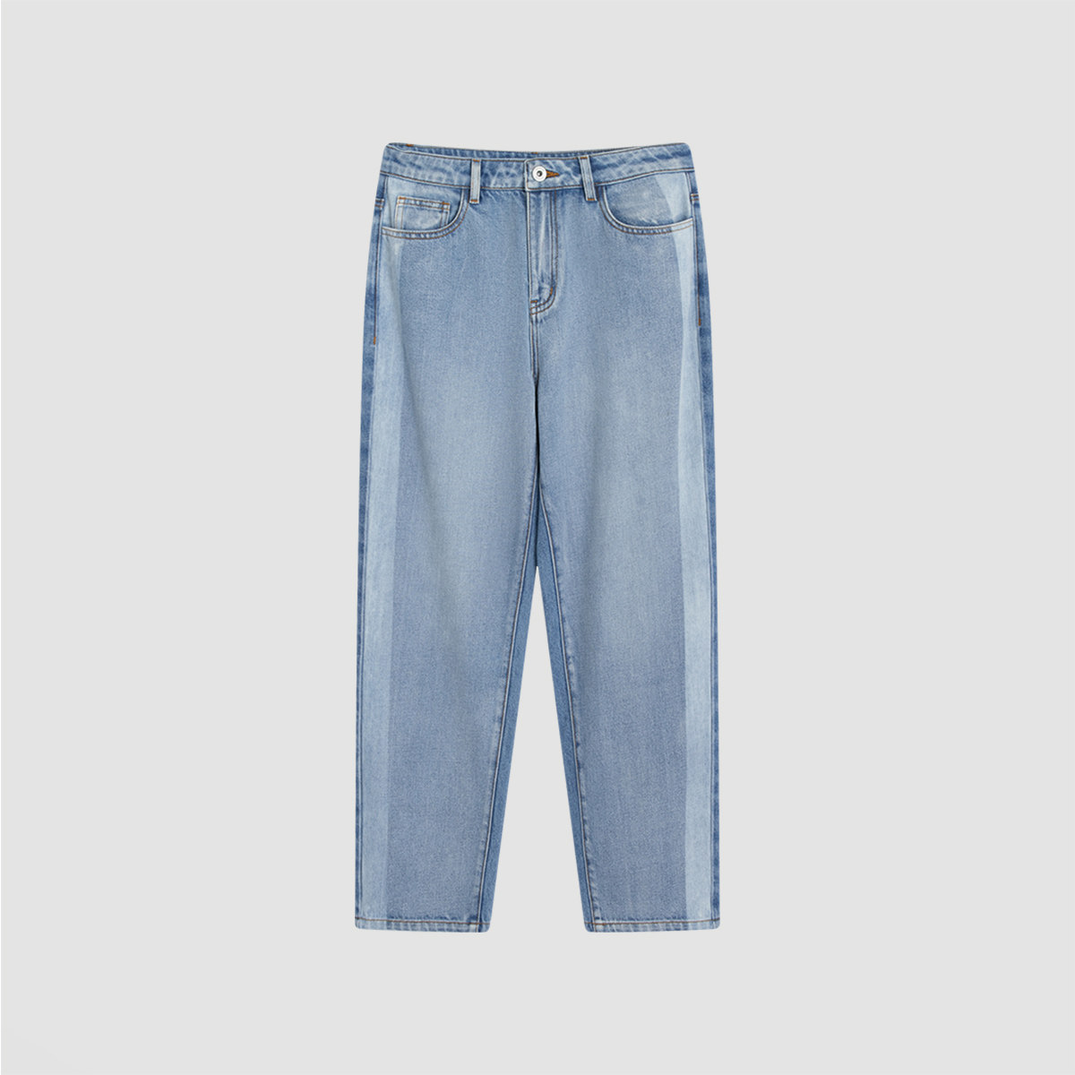 【播奥莱】播夏新款商场同款深浅牛仔色拼接后腰logo贴标牛仔裤