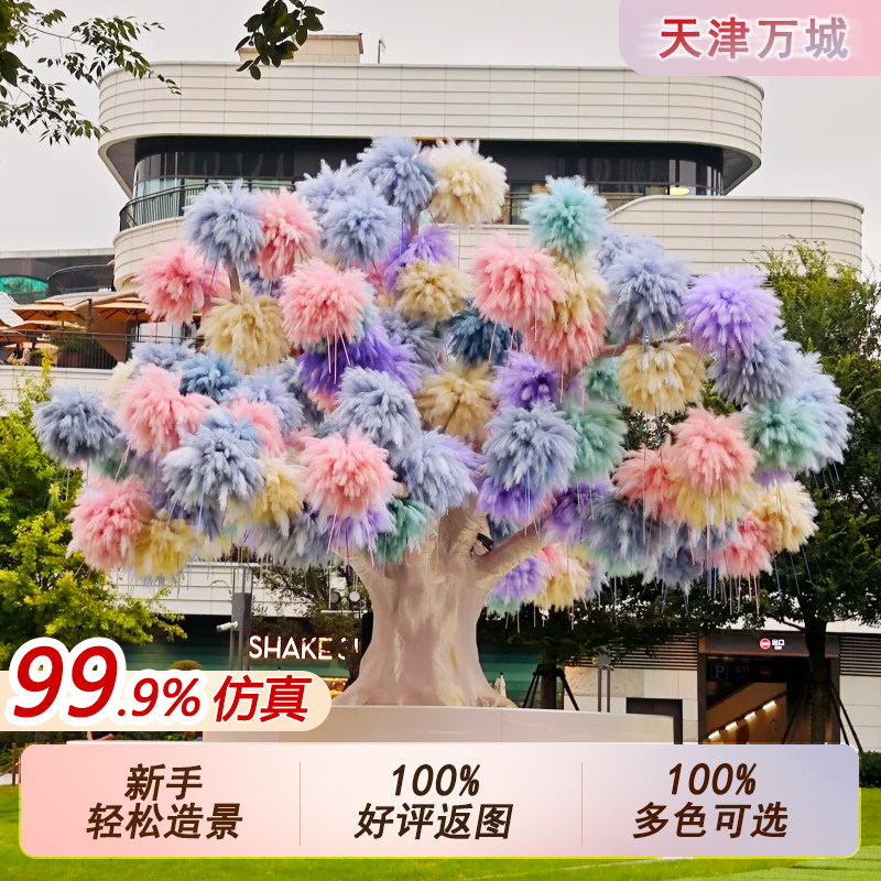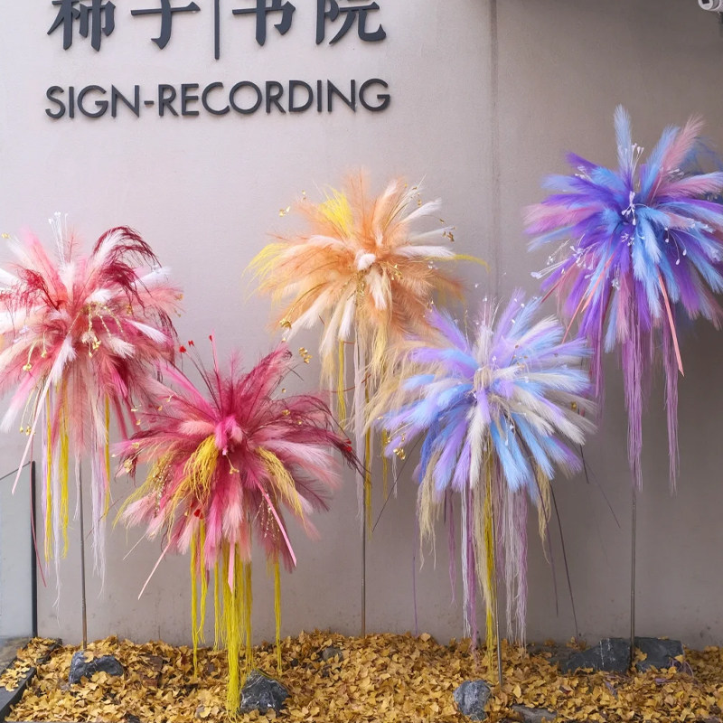 烟束花烟花球粉色白日焰火仿真芦苇干花羽毛婚房装饰孔雀草仿真花