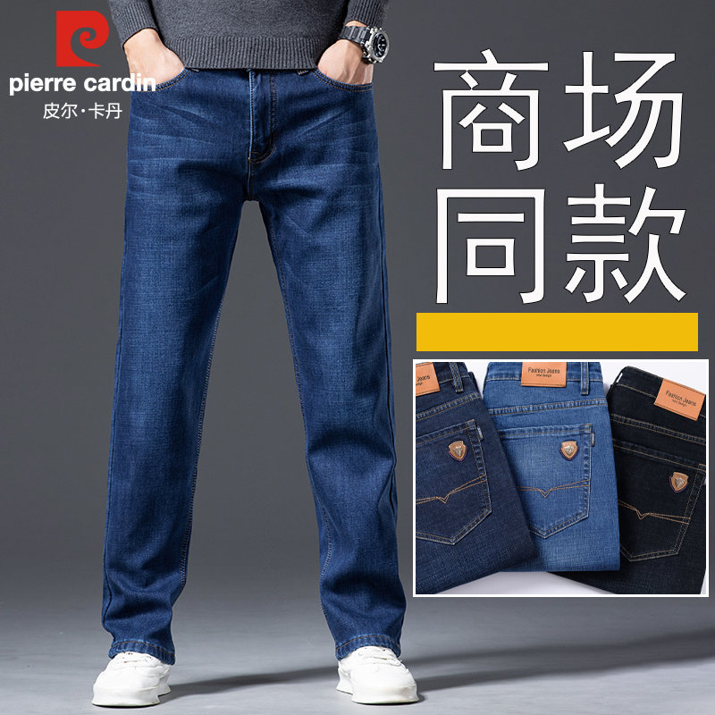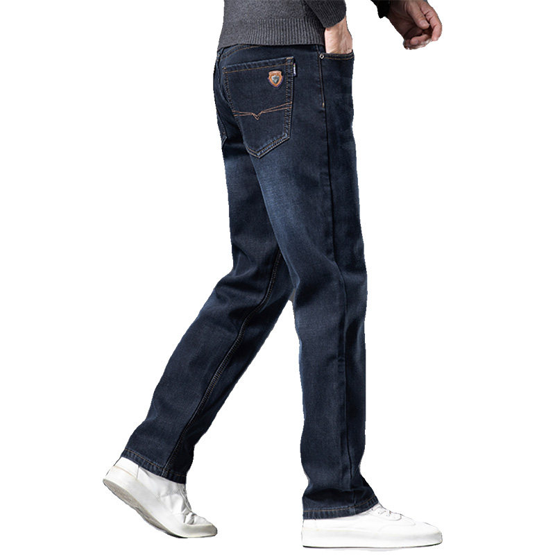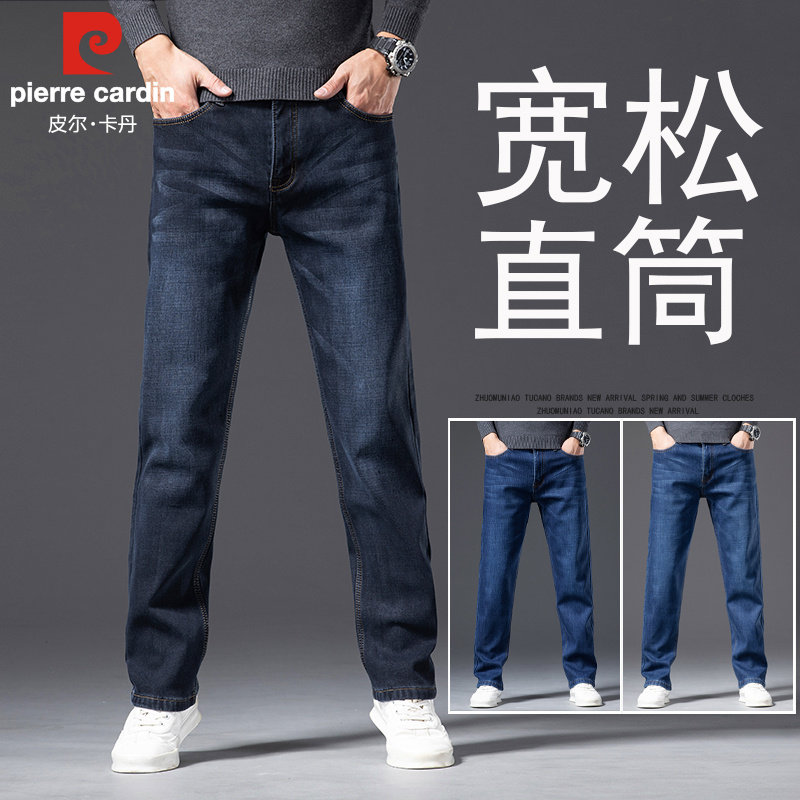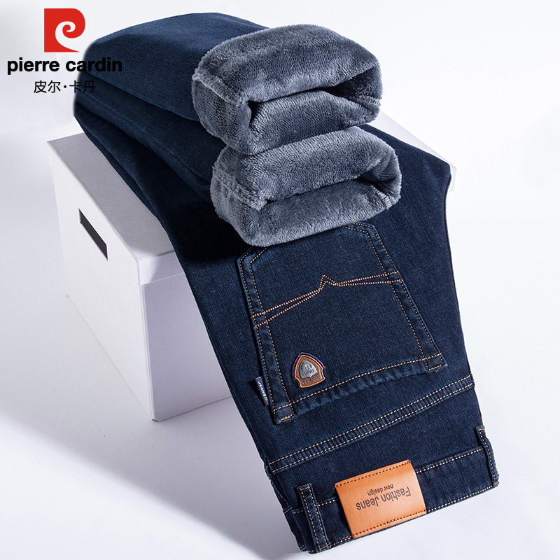 皮尔卡丹加绒加厚牛仔裤宽松直筒中年大码厚款棉裤子高档冬款男裤