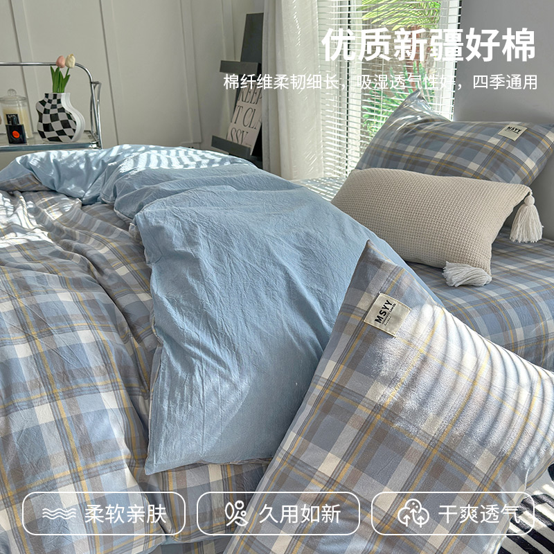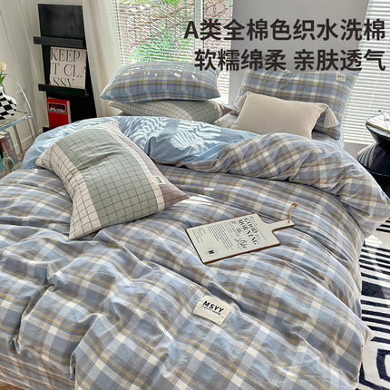 紫罗兰A类全棉色织水洗棉四件套纯棉床品床单被套学生床笠三件套
