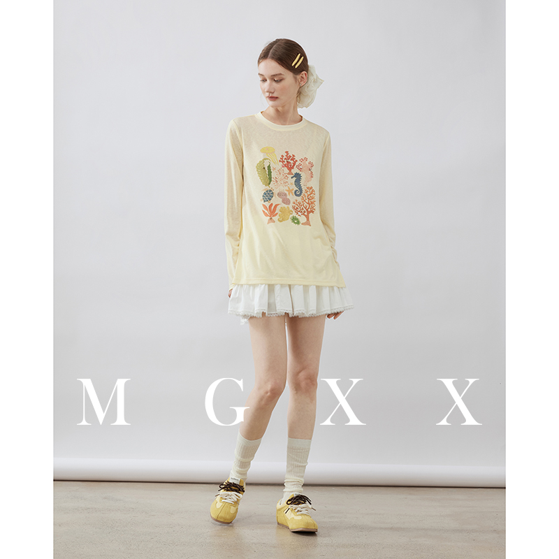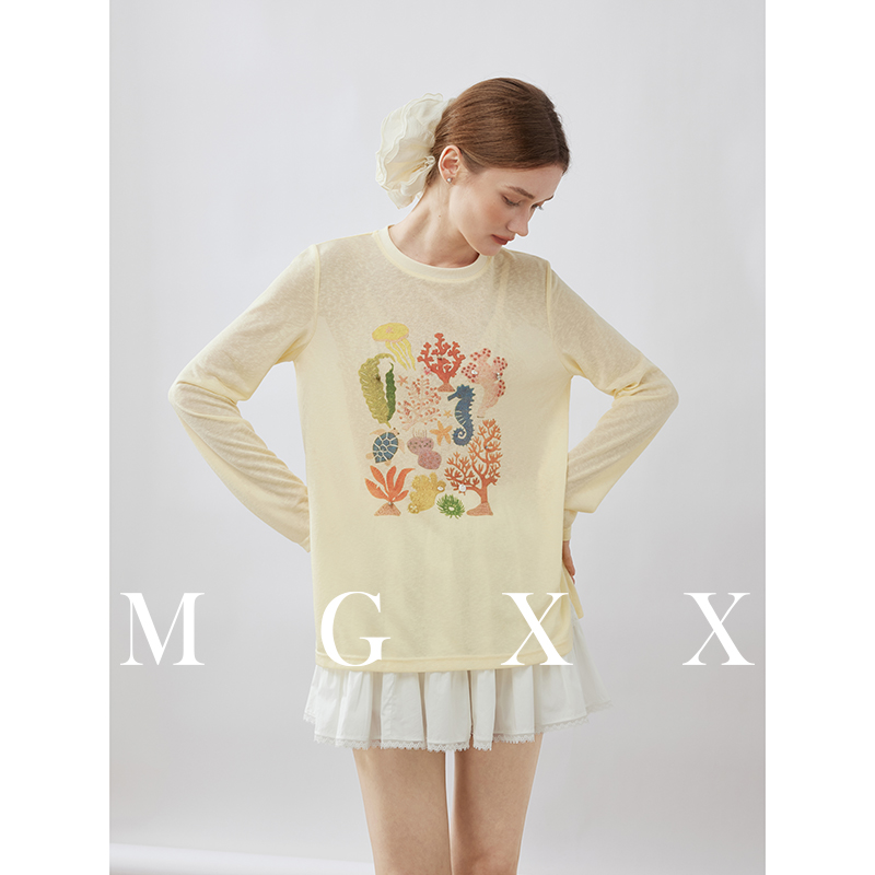 MG小象夏季新品肌理针织印花手工花钉珠趣味短袖T恤M825Y07689-2