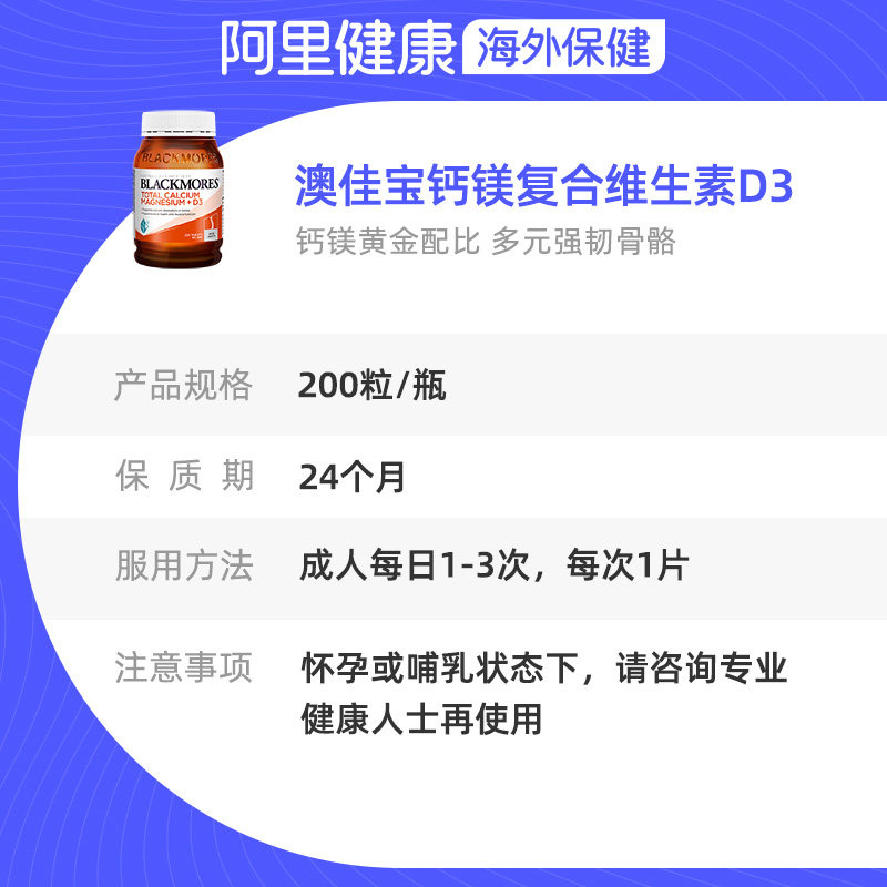 BLACKMORES澳佳宝活性钙镁复合维生素D3 200粒补钙青少年孕妇