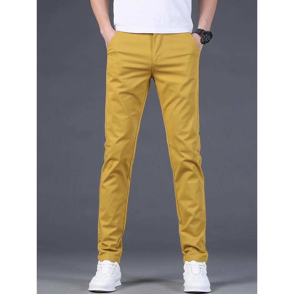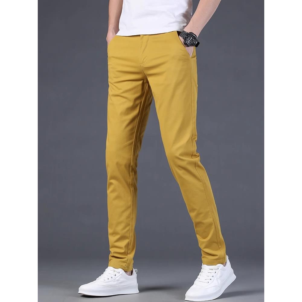 啄木鸟高端纯棉休闲裤男士修身小直筒潮牌多巴胺九分百搭商务长裤