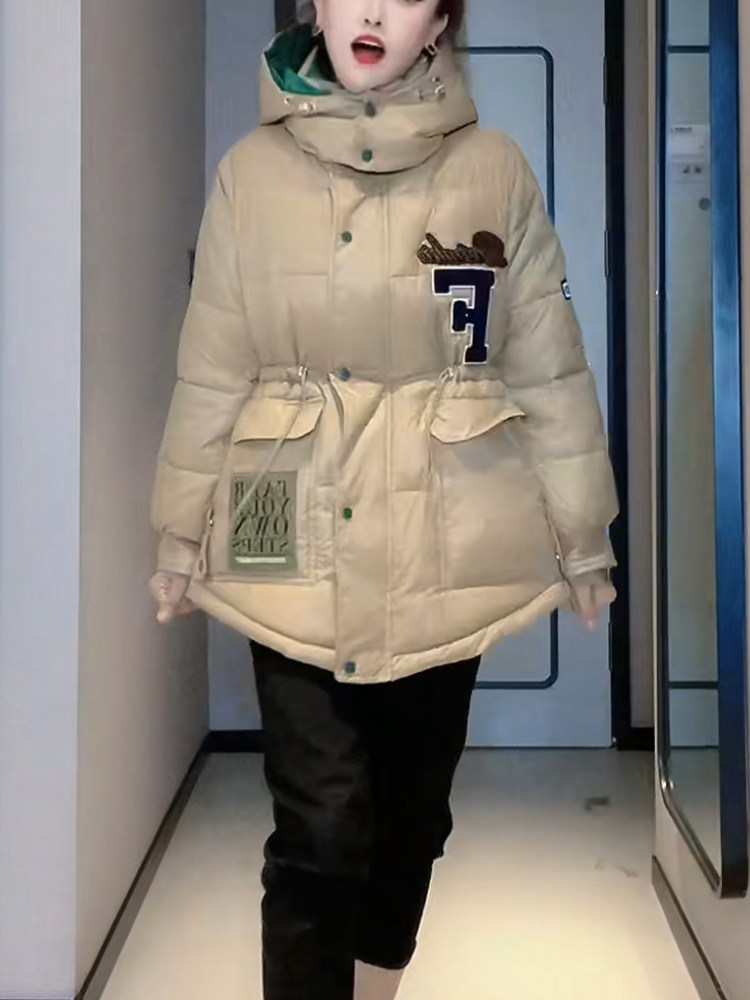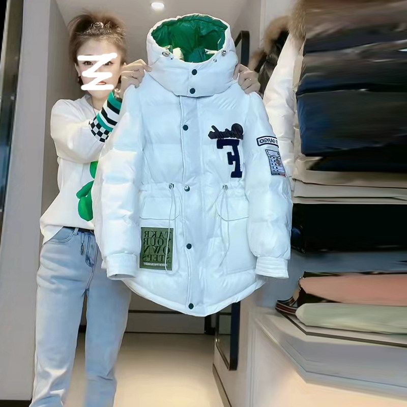 欧洲站冬装2025新款欧货潮牌字母标连帽宽松加厚派克羽绒棉服外套