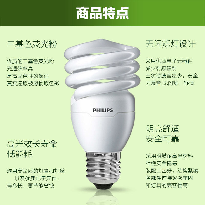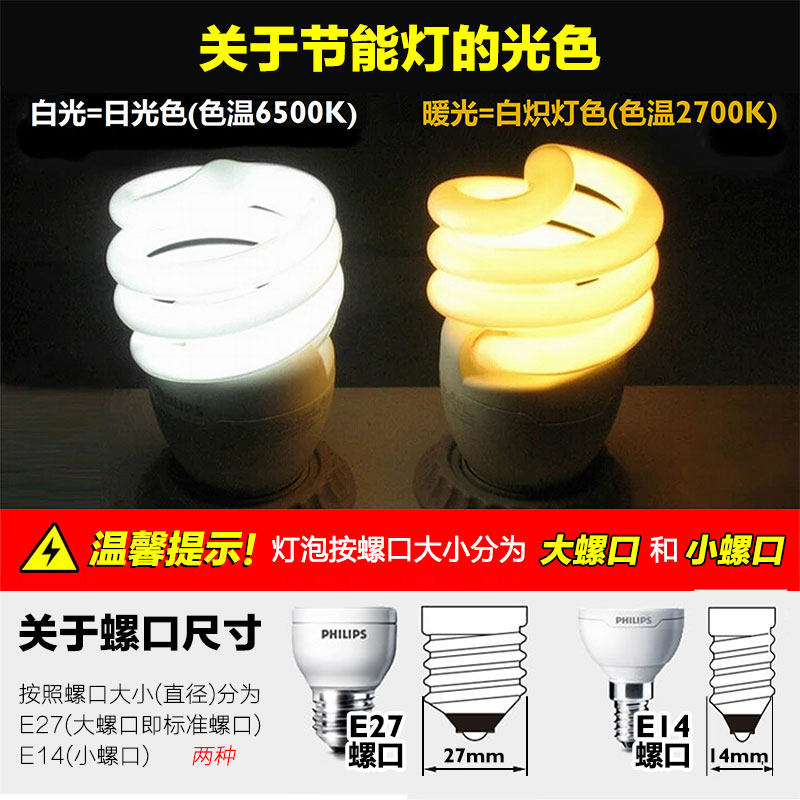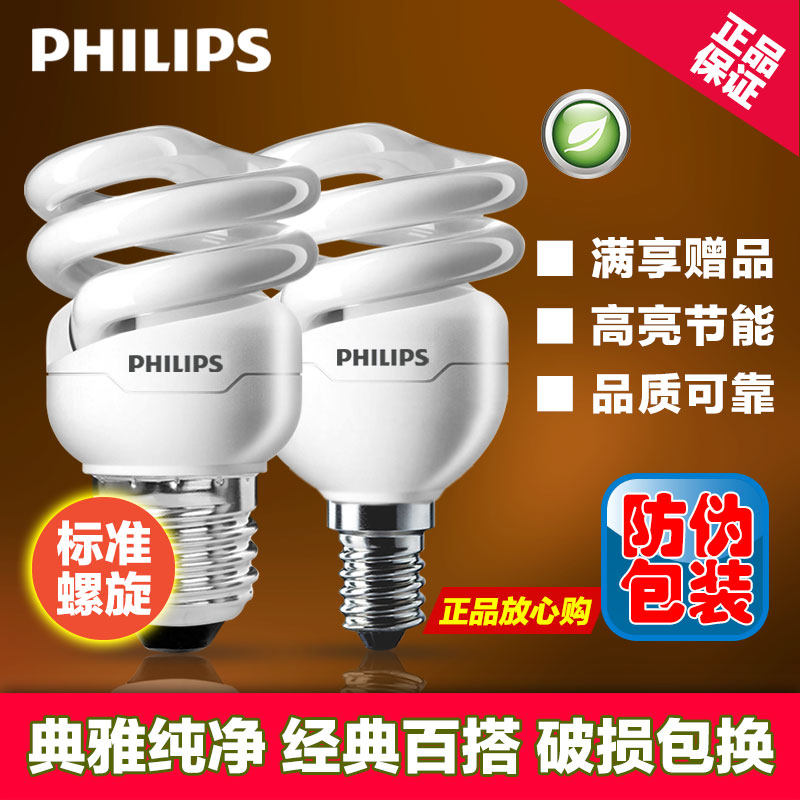 飞利浦螺旋节能灯 E27螺口E14家用三基色灯管5w~32w超亮节能灯泡