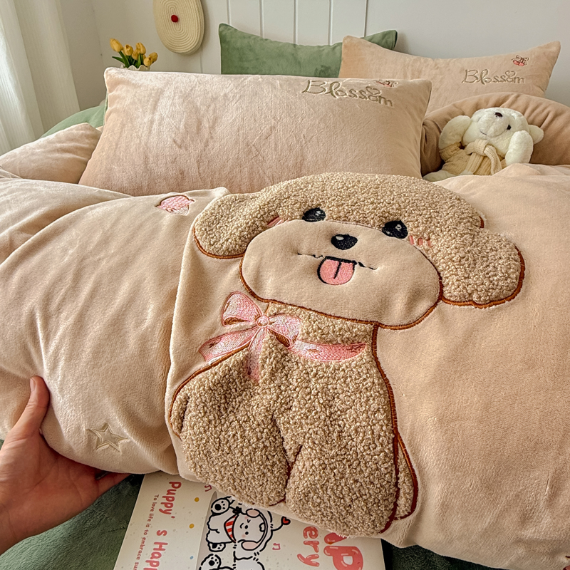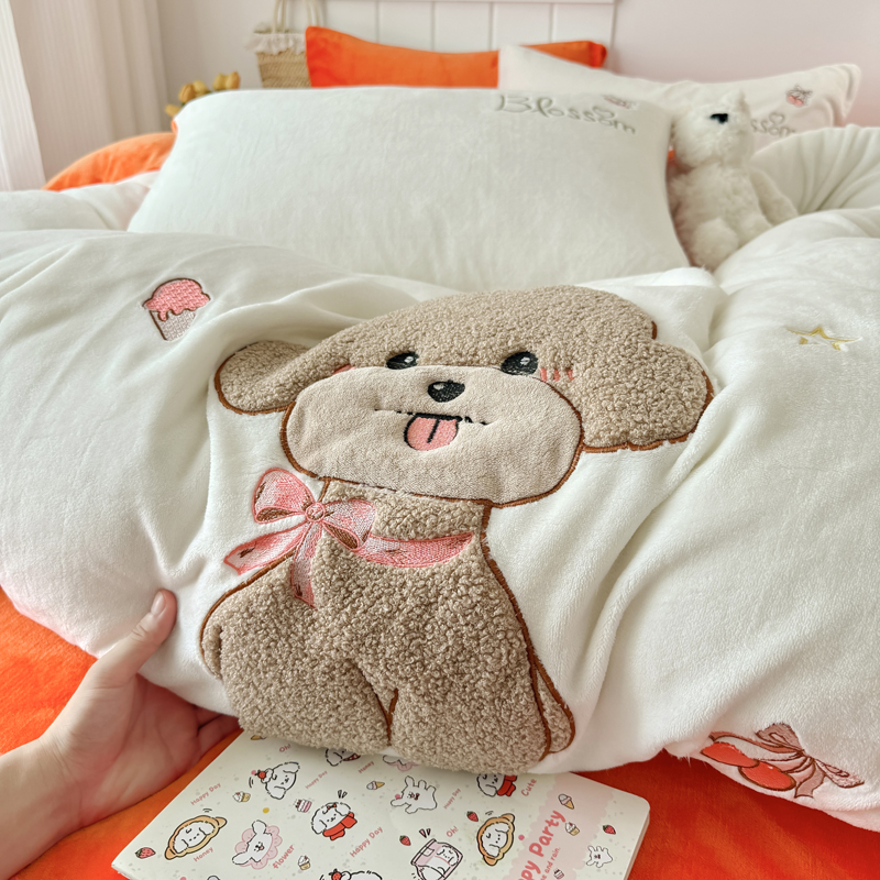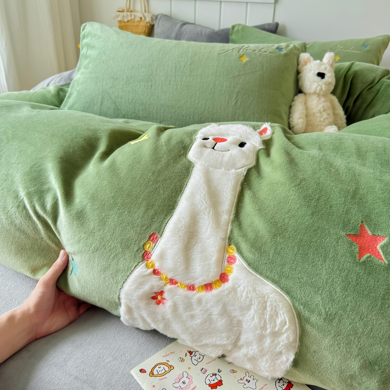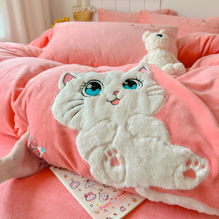 牛奶绒卡通猫咪毛绒四件套粉色可爱女孩床品床单被套儿童珊瑚绒冬