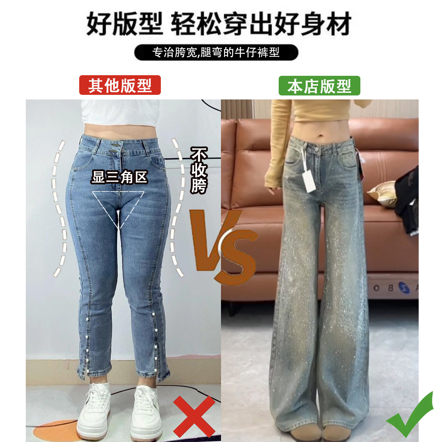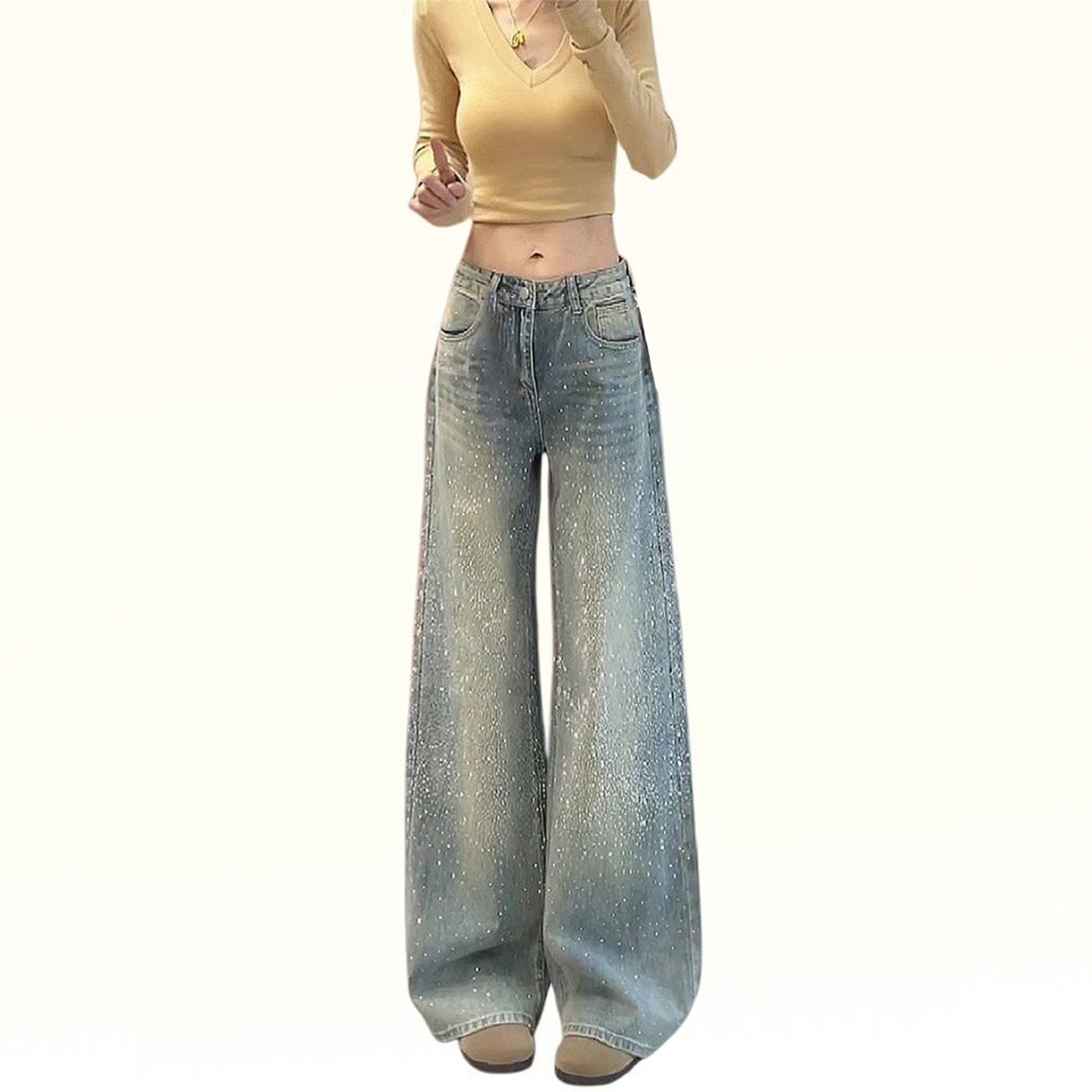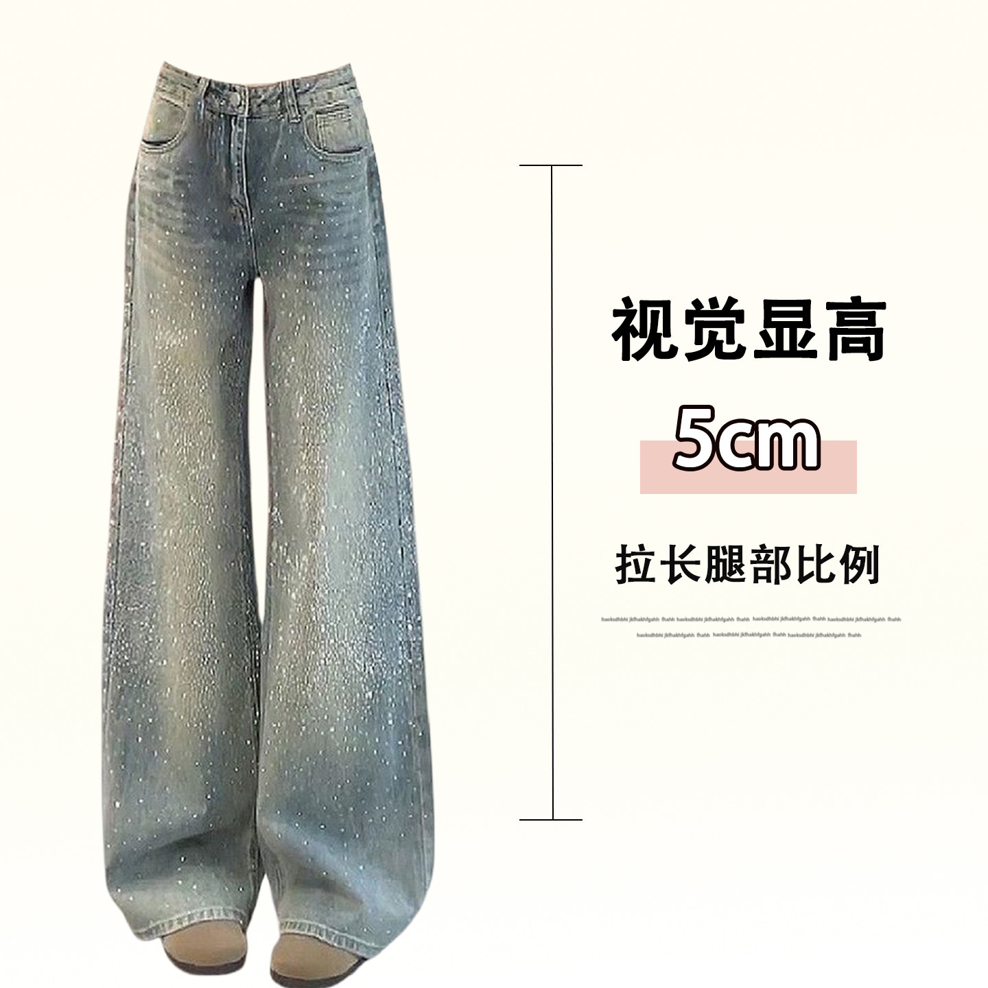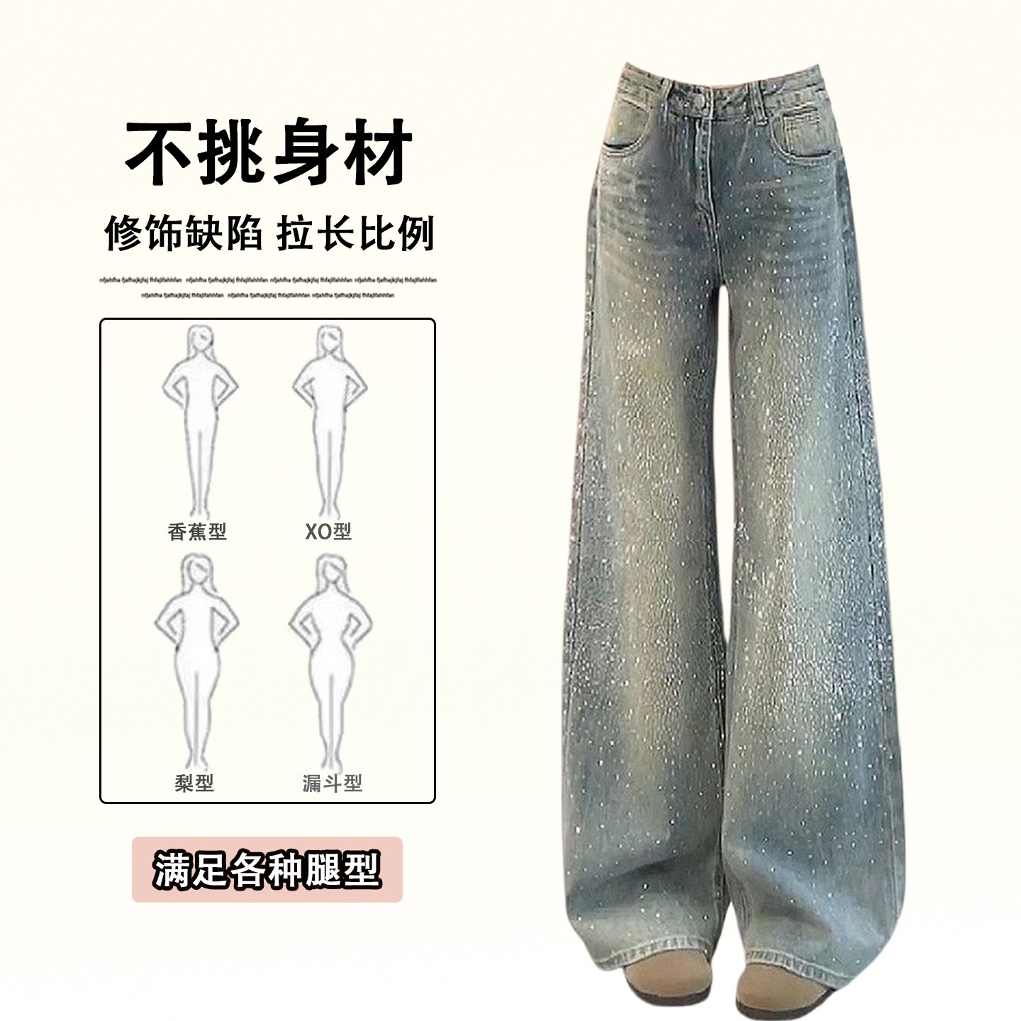 特大码女装设计感满天星烫钻牛仔裤女胖mm韩系时尚气质阔腿长裤子